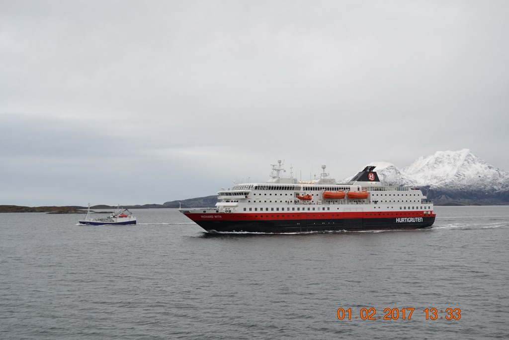 14:00 Går av vakten syd om Sandnessjöen.