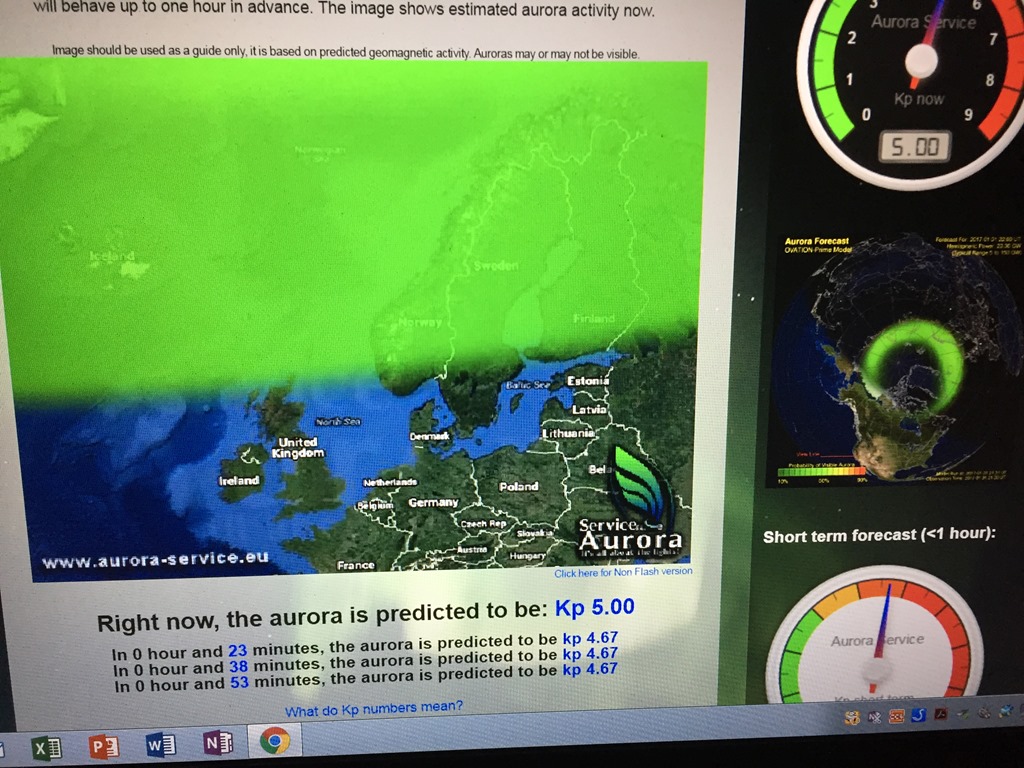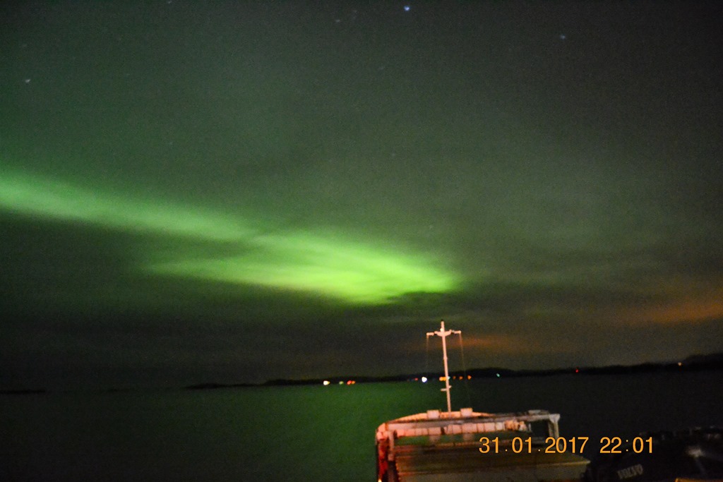 20:00 Kommer på vakt när vi passerat Brekstad. Ser ut som att det skall bli en hel del norrsken ikväll.![]()