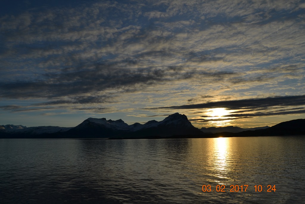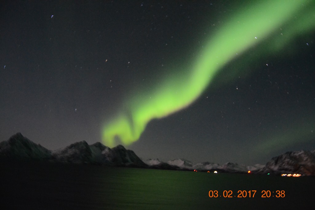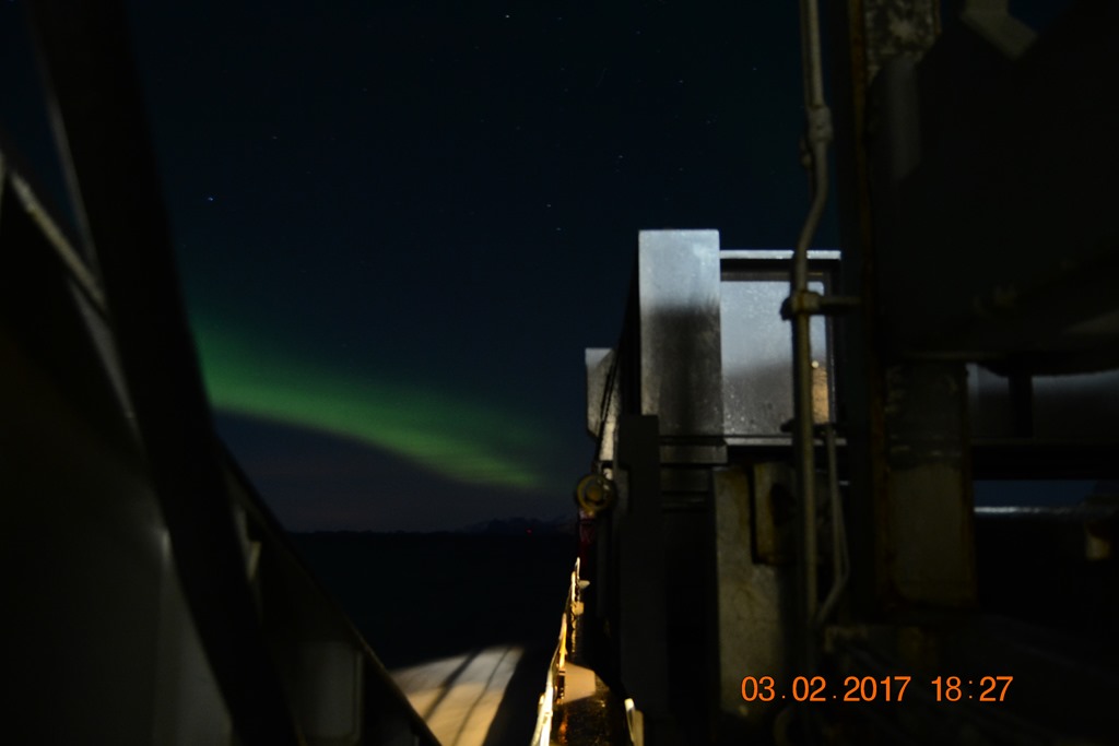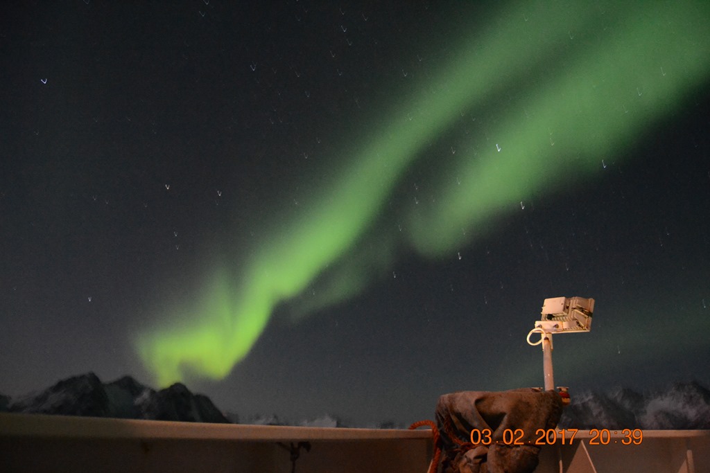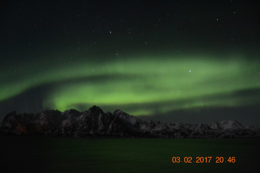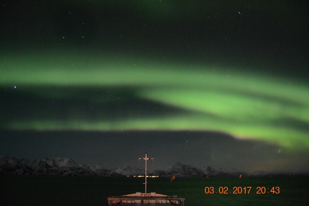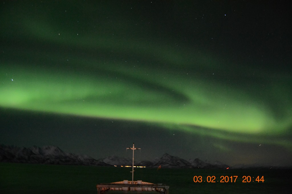 20:00 Kommer på vakt ute på Vestfjorden och går upp mot Raftsundet. Blir en riktigt fin kväll med massor av norrsken och stilla väder.![]()