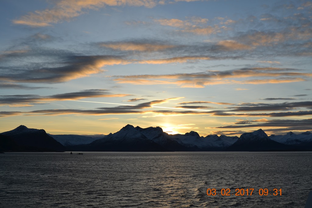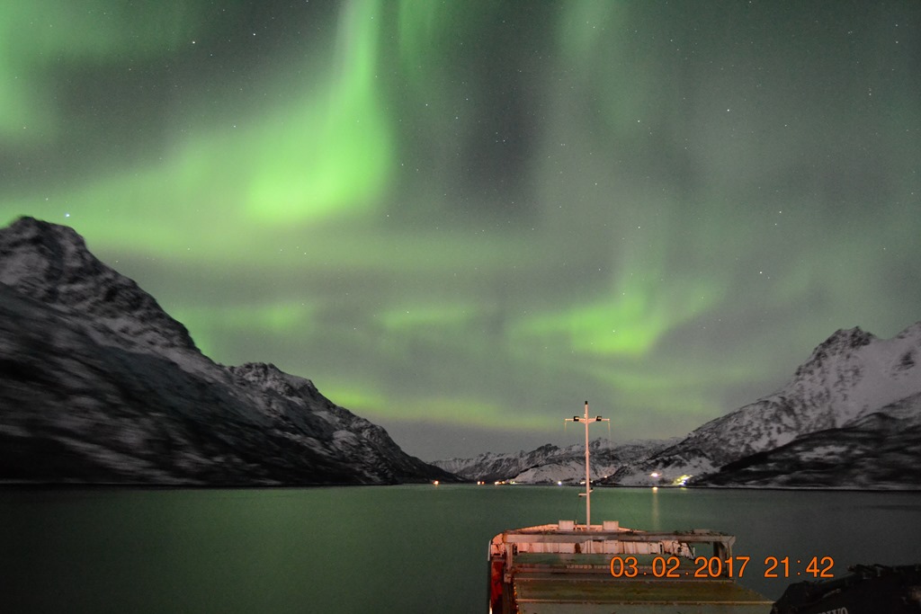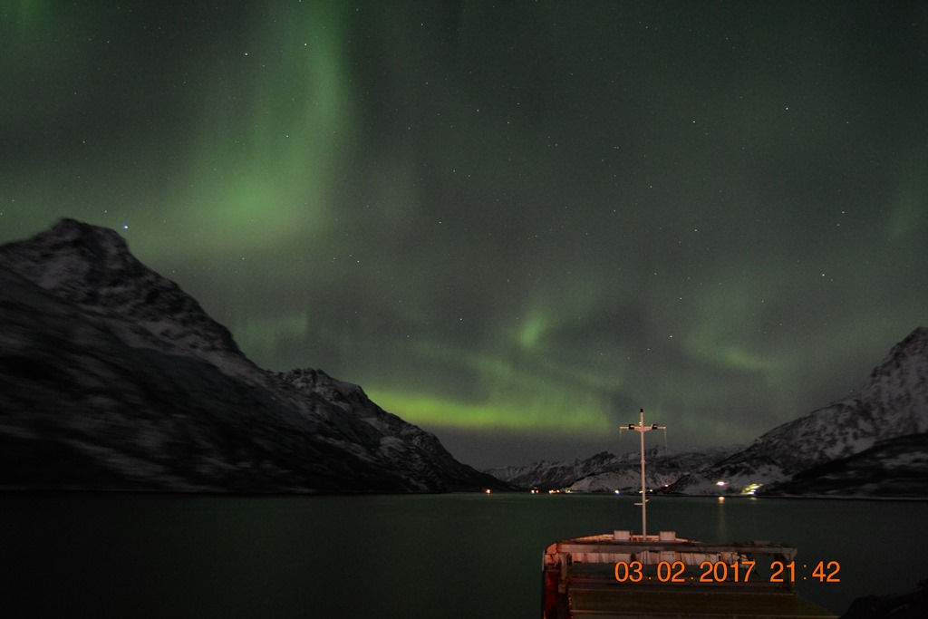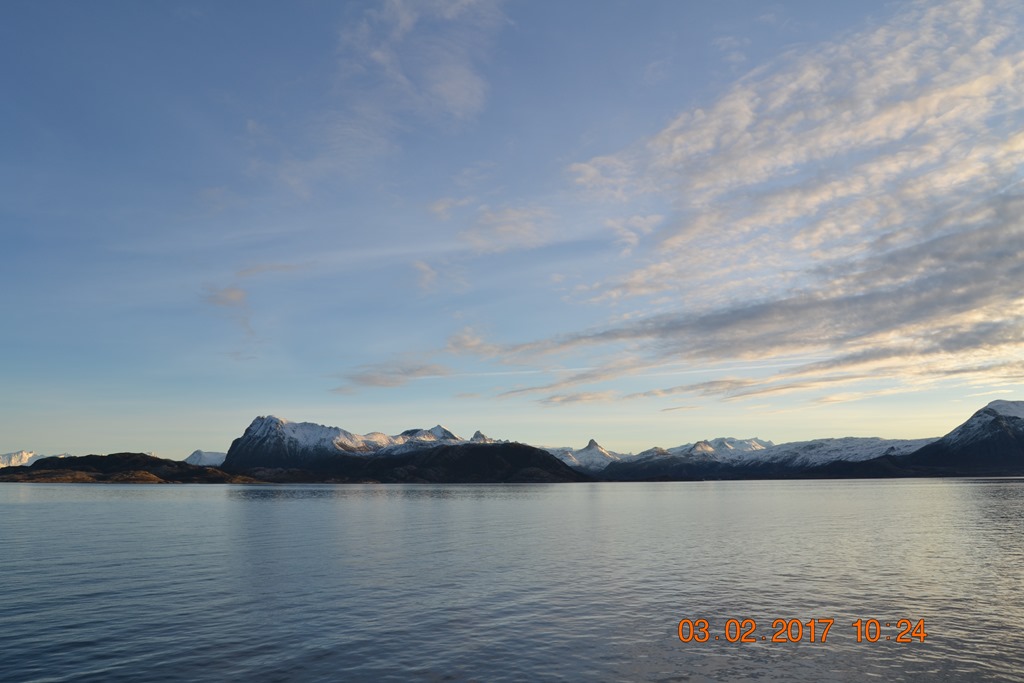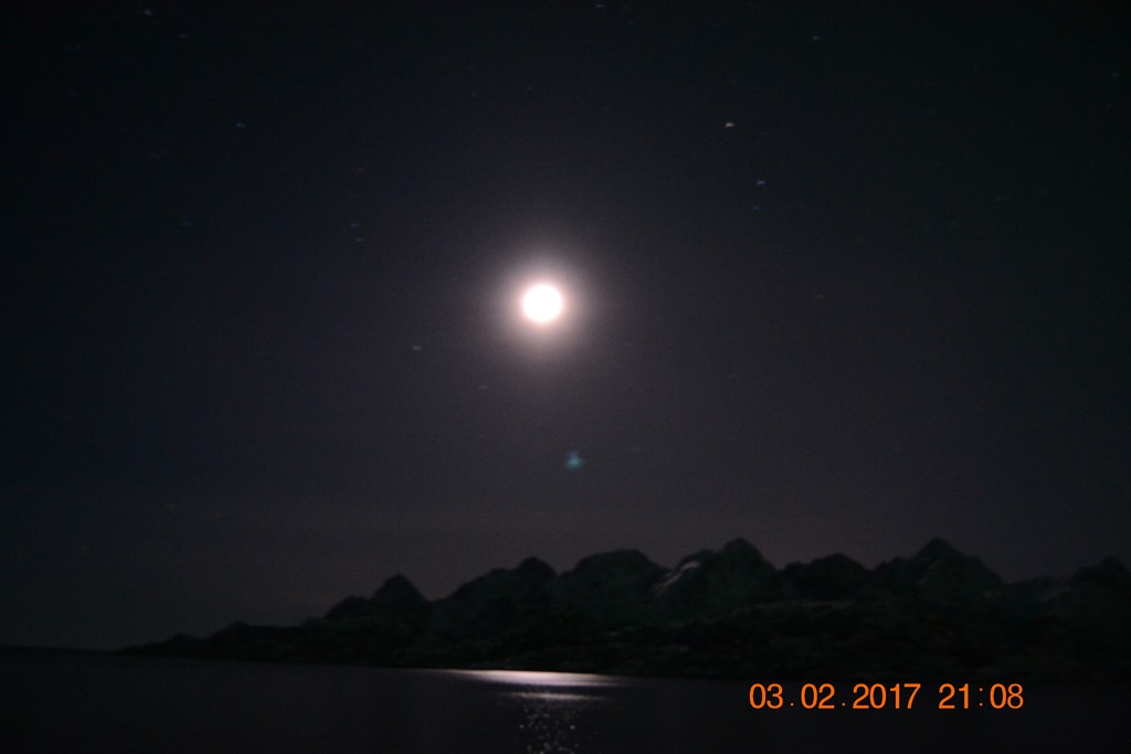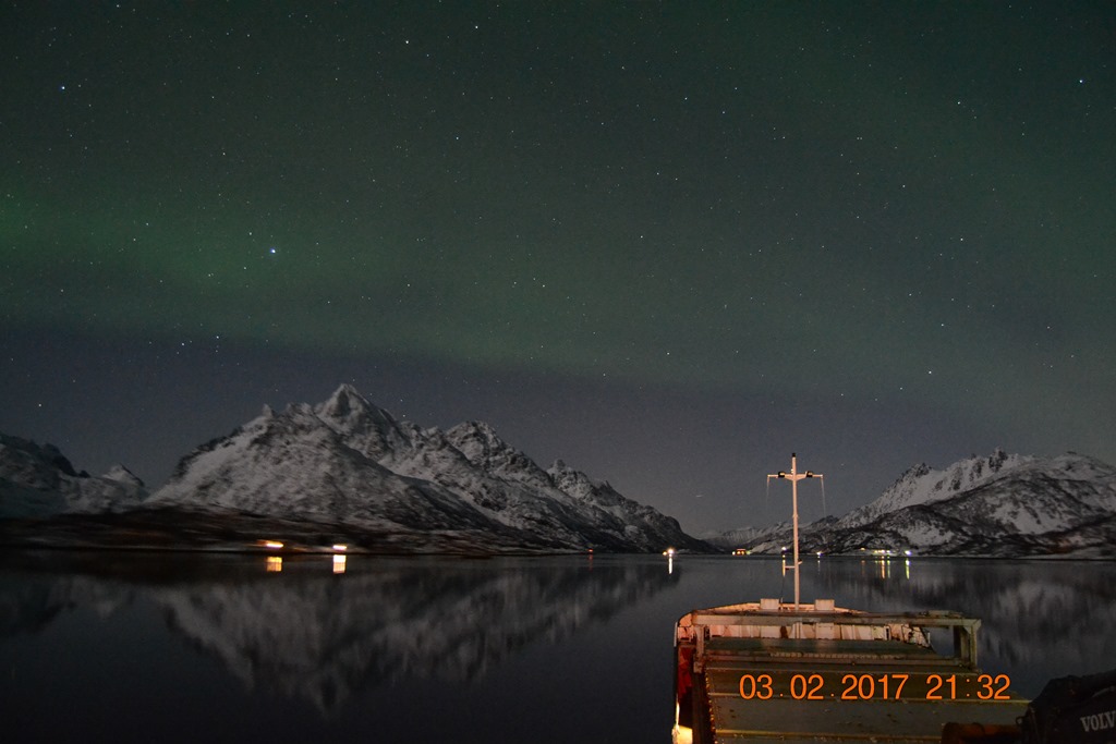 20:00 Kommer på vakt ute på Vestfjorden och går upp mot Raftsundet. Blir en riktigt fin kväll med massor av norrsken och stilla väder.![]()