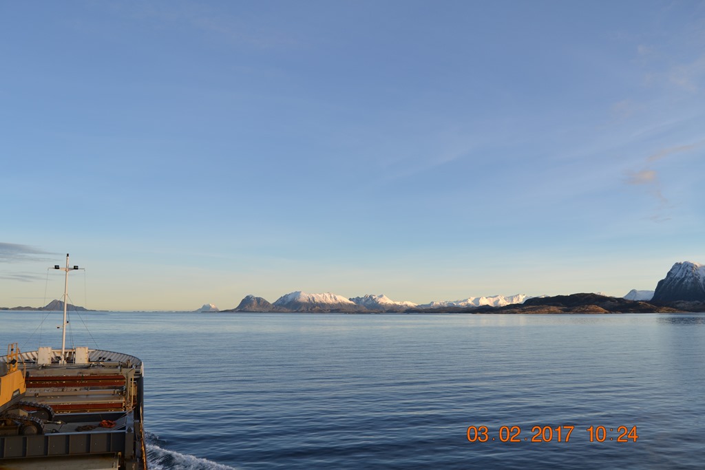 04:45 Avgår från Mo i Rana och sätter kursen mot Blokken. När vi kommit från kaj så kommer styrman upp och jag går för att sova lite till.