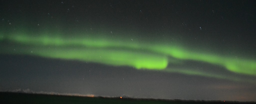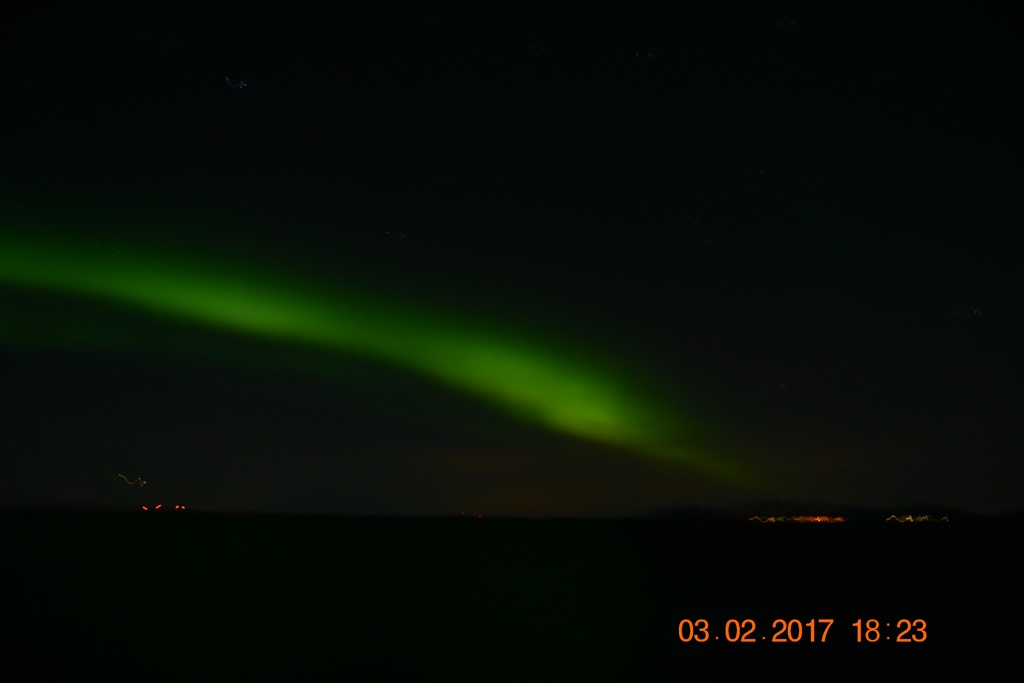 18:00 Vaknar och går upp för att få lite kaffe, ser att det är norrsken på gång så jag tar på mig och går ut en stund.![]()