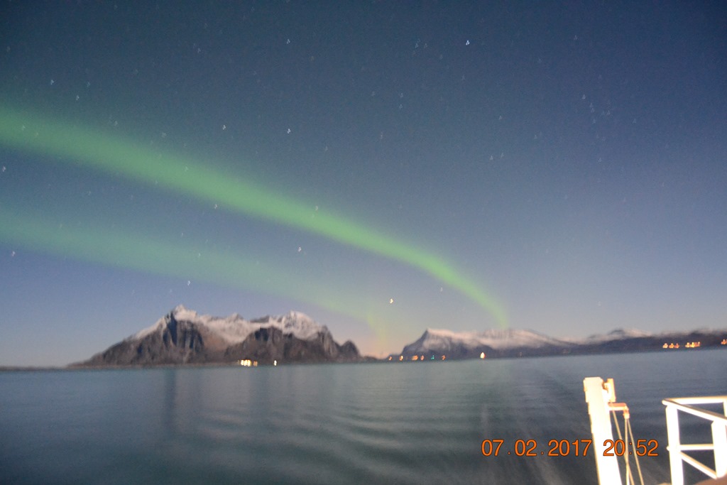 14:00 Går av vakten ute på Vestfjorden och bjuds på pölse i brun sås. Så jag går rätt till sängs eftersom jag inte mår något vidare. Har åkt på en dunderförkylning.