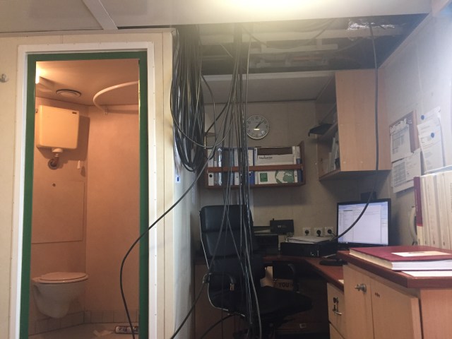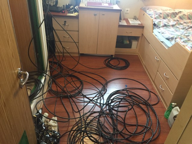 Vi håller på nere i pumprummet och försöker reda ut hur rören skall dras och kopplas.