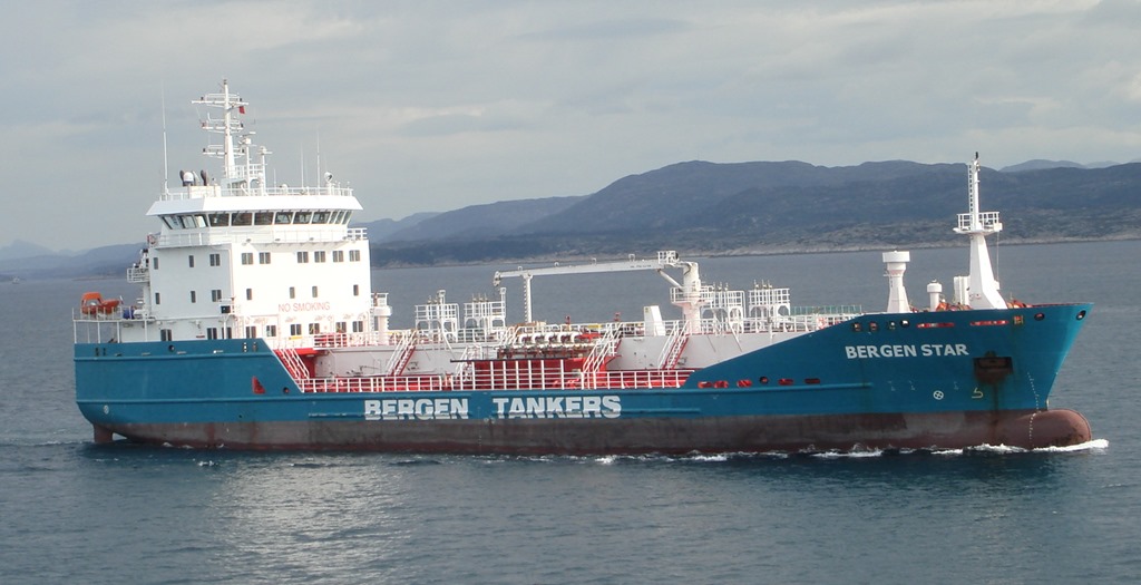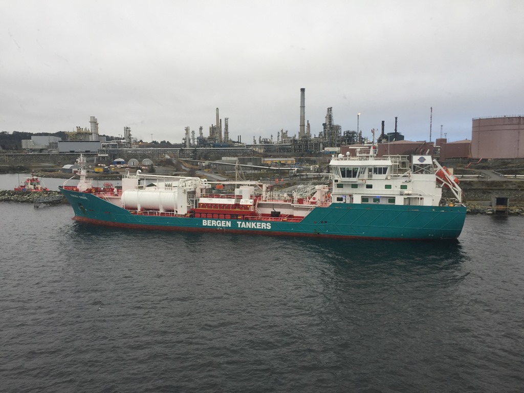 04:35 Förtöjda vid kaj på Mongstad för att lasta bensin, diesel, biodiesel och jetfuel.
