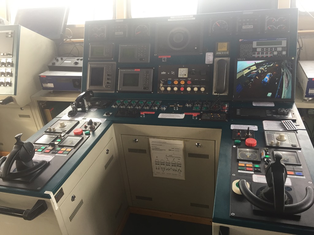 Uppe på bryggan börjar det bli klart med. Radarn börjar kopplas ihop med ECDIS och all annan utrustning. Sedan skall det sättas in lite nya möbler med.![]()