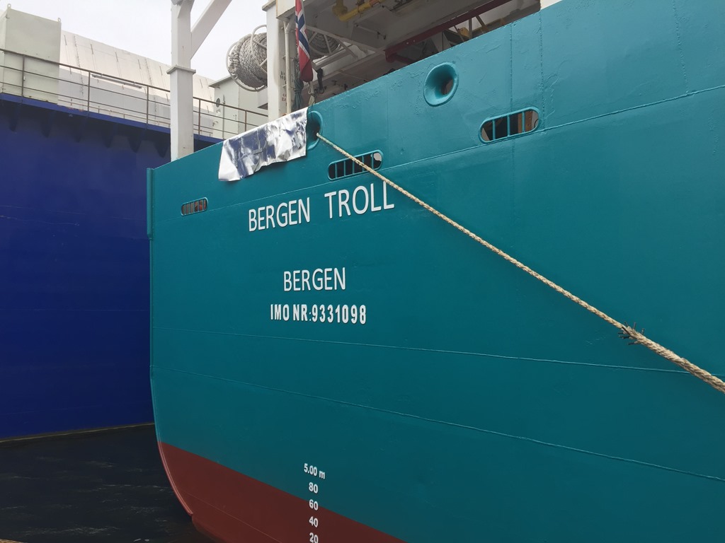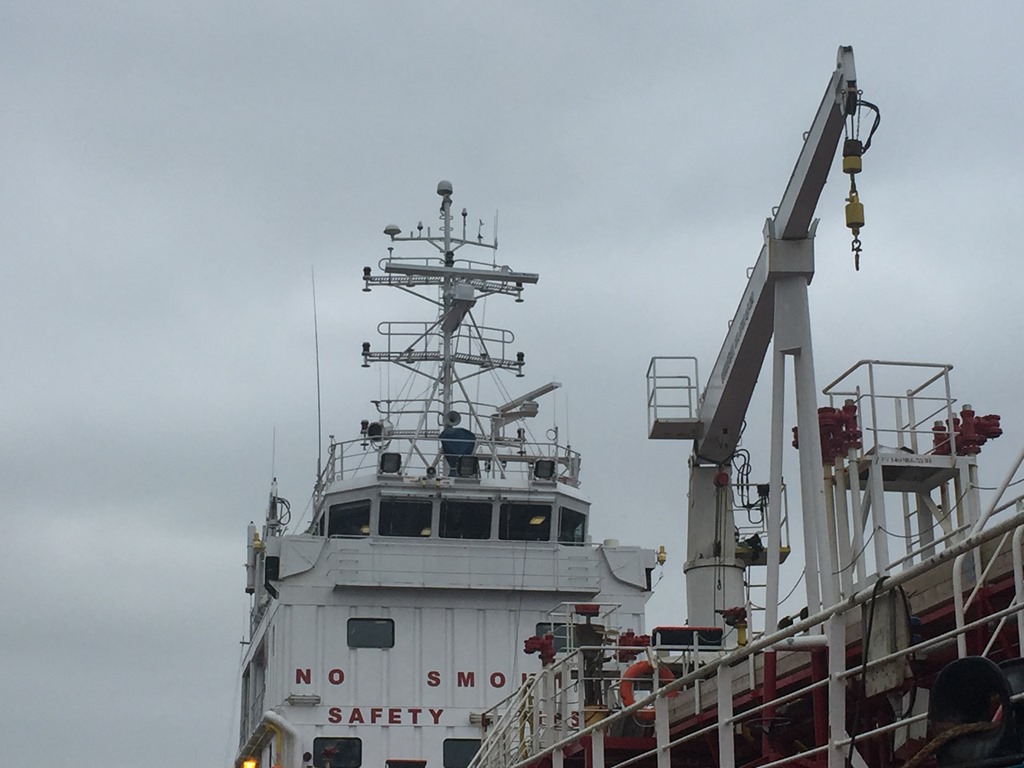 06:30 Vaknar och går ner för det sedvanliga kaffet innan frukost. Sedan går jag ut för att se hur långt de har kommit ute på däck.