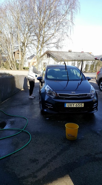Efter frukost så hämtade vi sommardäcken och körde upp till Läjet. Jag bytte däck på bilarna och sedan tvättade vi våra bilar i solskenet.