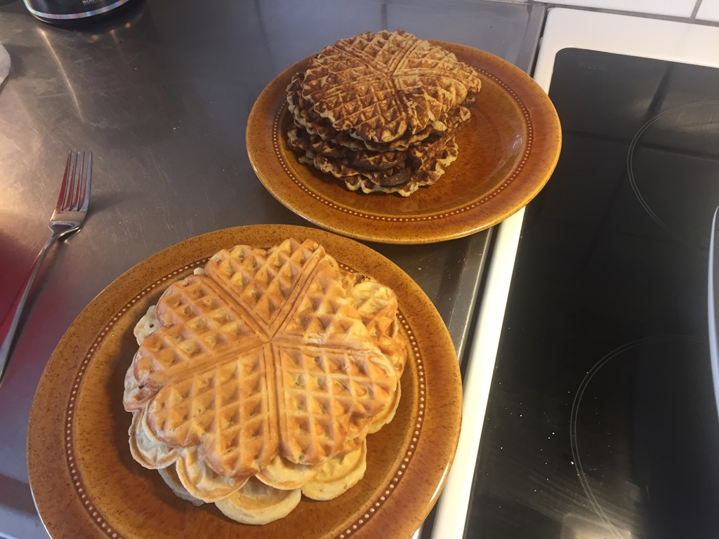 Gick en långrunda med Chilli och till lunch gjorde jag våfflor. Blev både LCHF våfflor och vanliga våfflor.![]()