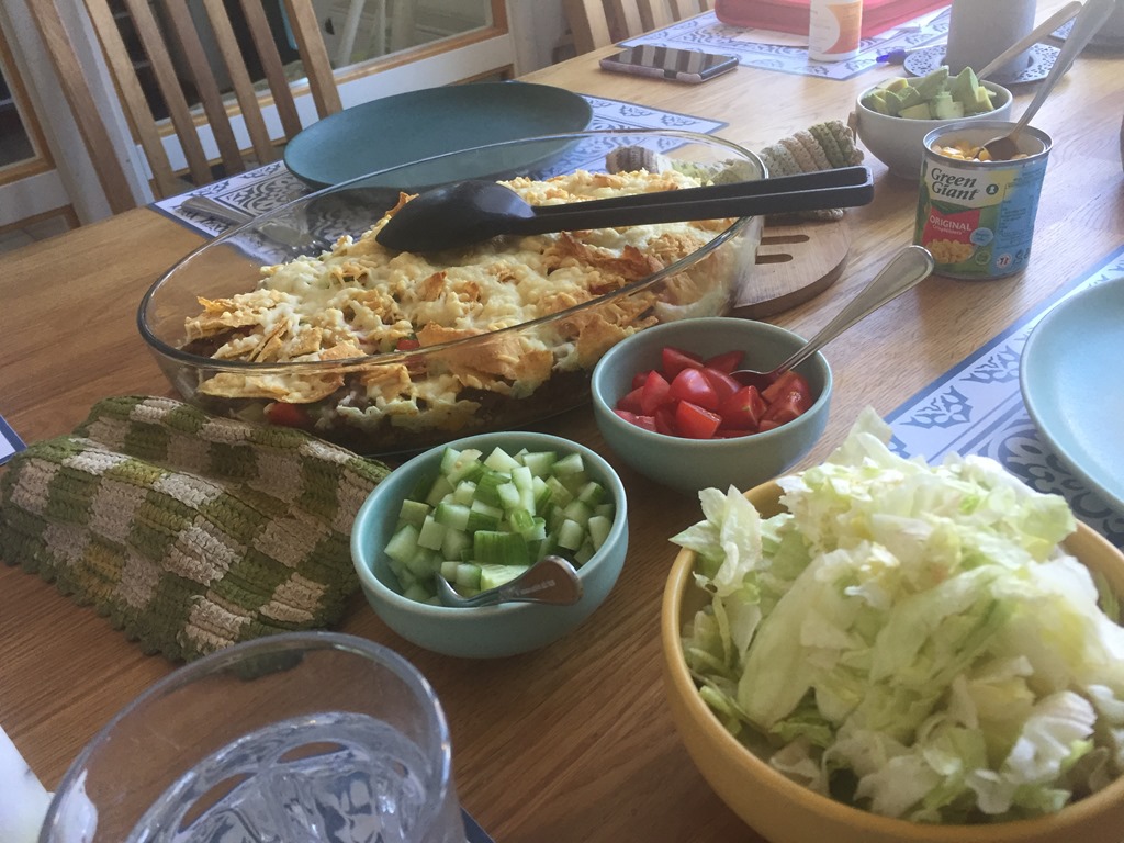 Ännu en fin dag och vi tog det lite lugnt på förmiddagen. Jag gjorde en tacopaj till lunch och sedan hämtade jag husbilen och började packa in. Chilli blev jätteglad och sprang in och ut och väntade på att vi skulle ge oss av.![]()