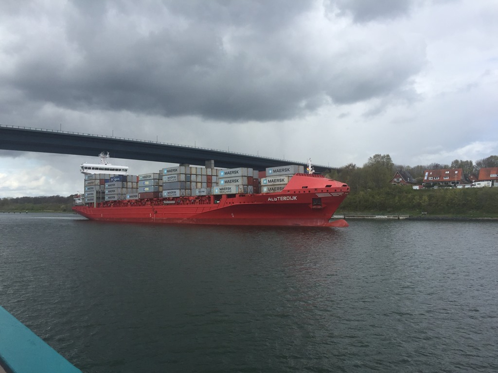 13:05 Färdiga med bunkringen och avgår mot slussen i Holtenau. Är bara 1 sluss som är öppen pga reparationer så det är väntetid.