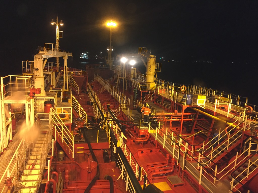 02:40 Förtöjda på utsidan Stoc Marcia för bunkring.![]()