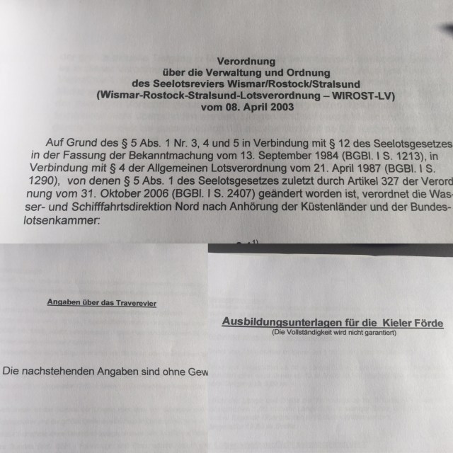 07:55 Lots ombord vid Kiel lighthouse och vi fortsätter inåt. Jag börjar samla på lite resor nu och har fått lite studiematerial av lotsarna. Blir ju inte enklare när allt står på tyska…