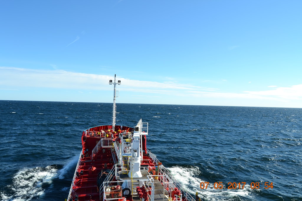 07:30 Går ner som vanligt för lite kaffe och frukost, sedan upp och lösa av Vegar. Vinden har ökat och det blåser ca 10-13 m/s nordostligt så farten har gått ner rejält. Men solen skiner så det är väl en fin dag ändå.