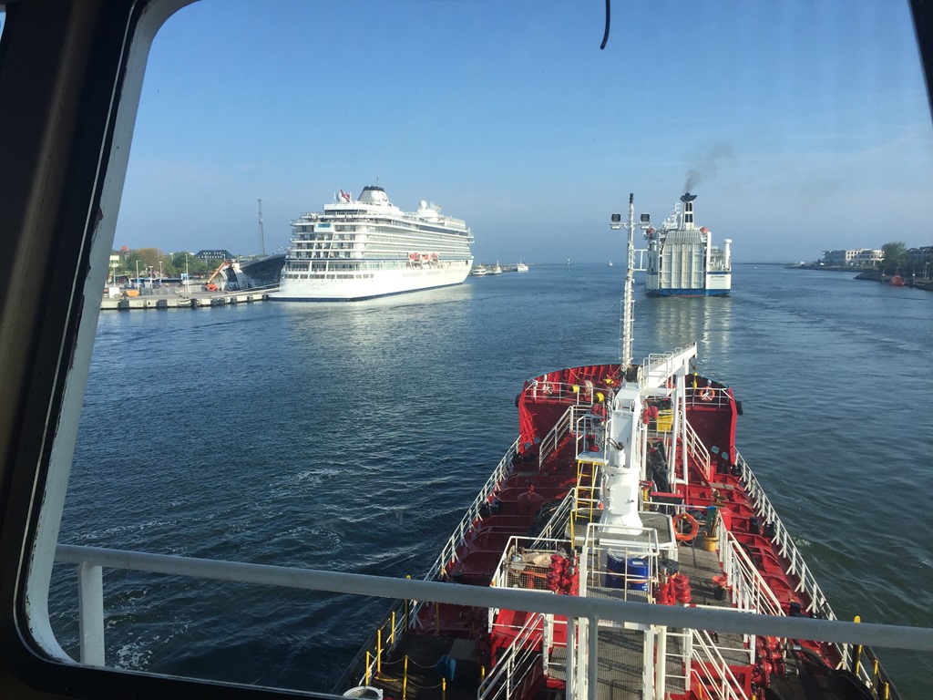 07:50 Avgår från Ölhafen men får slå av lite på farten för att släppa förbi Tom Sawyer som skall avgå.![]()