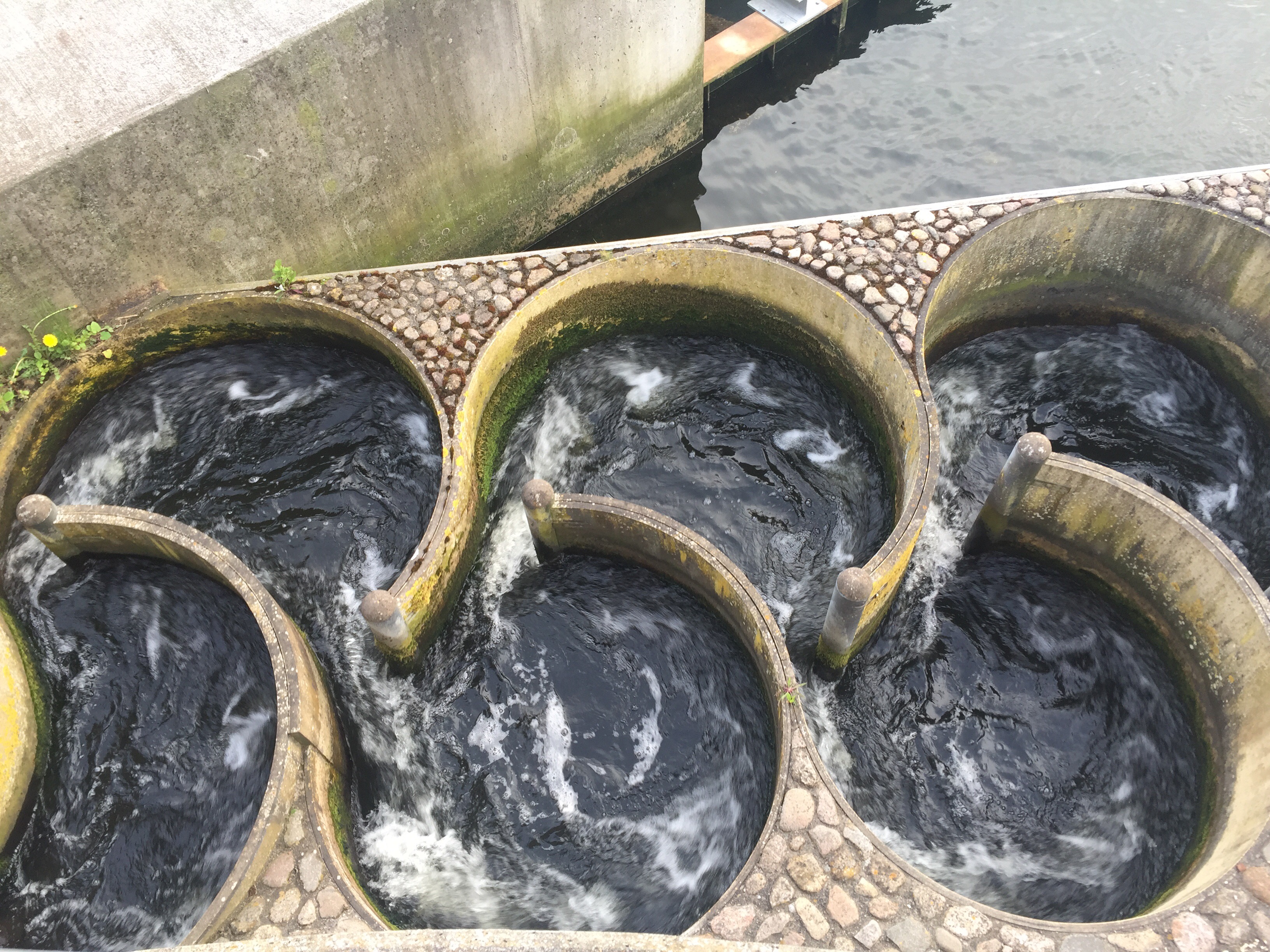 Går förbi en laxtrappa men ser ingen fisk.