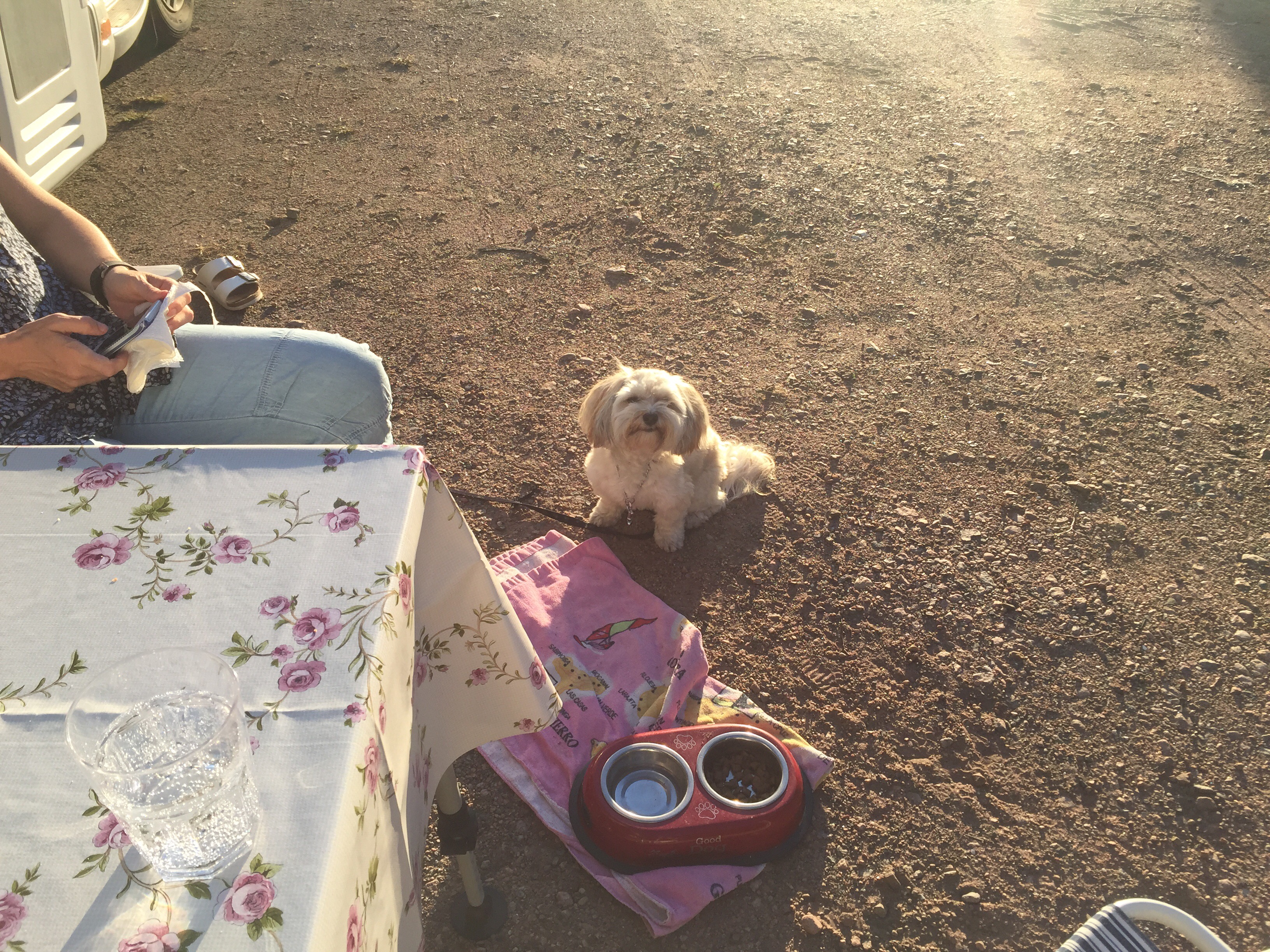 Vi dukade fram det nya campingbordet och lite färska räkor.