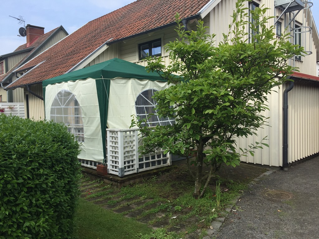 Fullt upp hela förmiddagen med att ordna inför studentfirandet. Iväg och hämta mat som jag beställt på Thuressons gårdsbutik och rökt Lax från Korshags. Det nya partytältet som jag köpte igår på biltema var mycket kraftigare och bättre.![]()