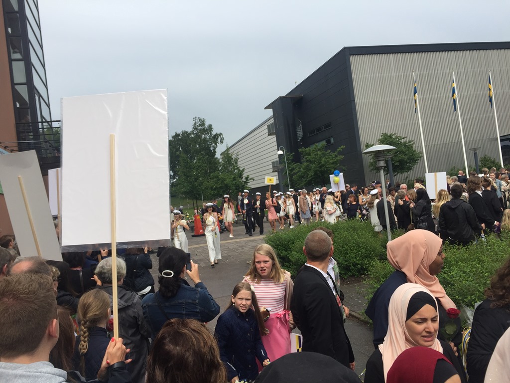 Vid 14 tiden så skulle de springa ut så vi samlades utanför skolan.![]()