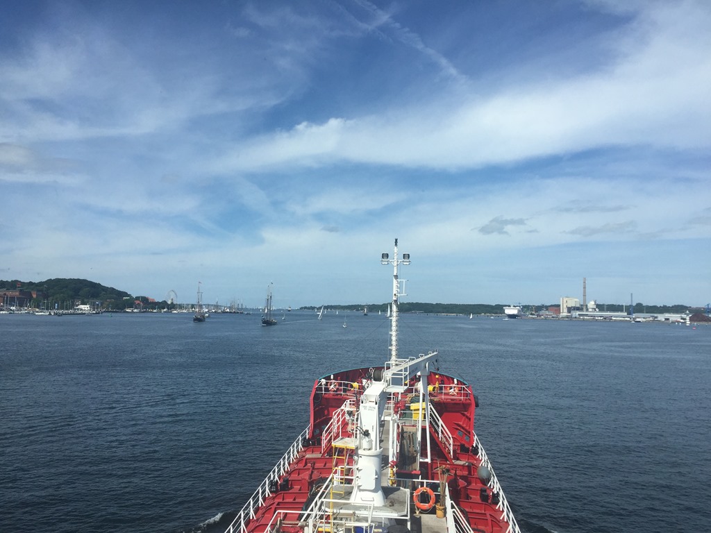 Blir en snirklig väg ut pga alla segelbåtar som korsar framför stäven på oss. När vi passerat Kiel lighthouse så går jag ner och sätter mig vid datorn och börjar skicka alla mail till de nästa hamnarna och agenterna.