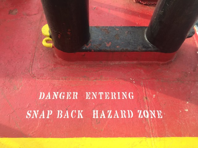 19:00 Innan kvällsmat så går jag en runda på däck för att se hur arbetet framskridit. De har fått målat dit lite varningsmärken.