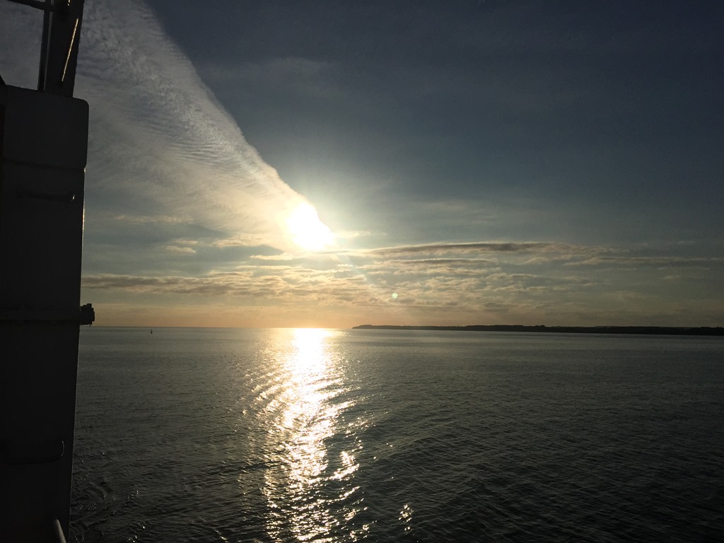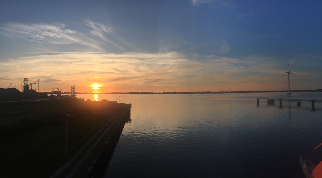 05:30 Vaknar och ser att vi närmar oss Travemunde så jag hämtar lite kaffe och går upp på bryggan.