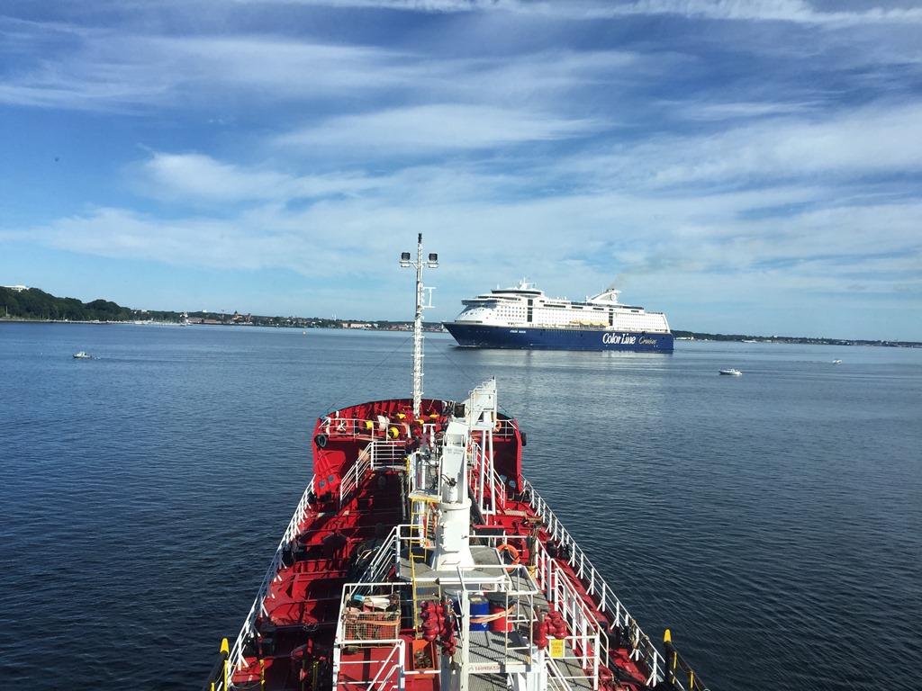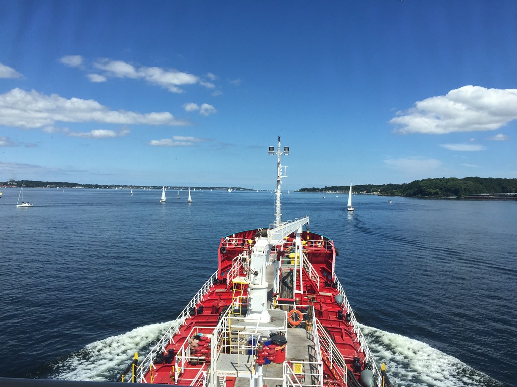 13:00 Klara med bunkringen och avgår utan lots eftersom vi är i ballast nu. Blir till att använda tutan rejält idag för att få fri lejd mellan alla segelbåtar. Bra kraft i vår signal så jag skrämmer nog slag på några snedseglare.![]()