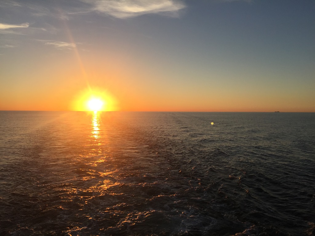 Blir en fin solnedgång när vi närmar oss Rostock![]()