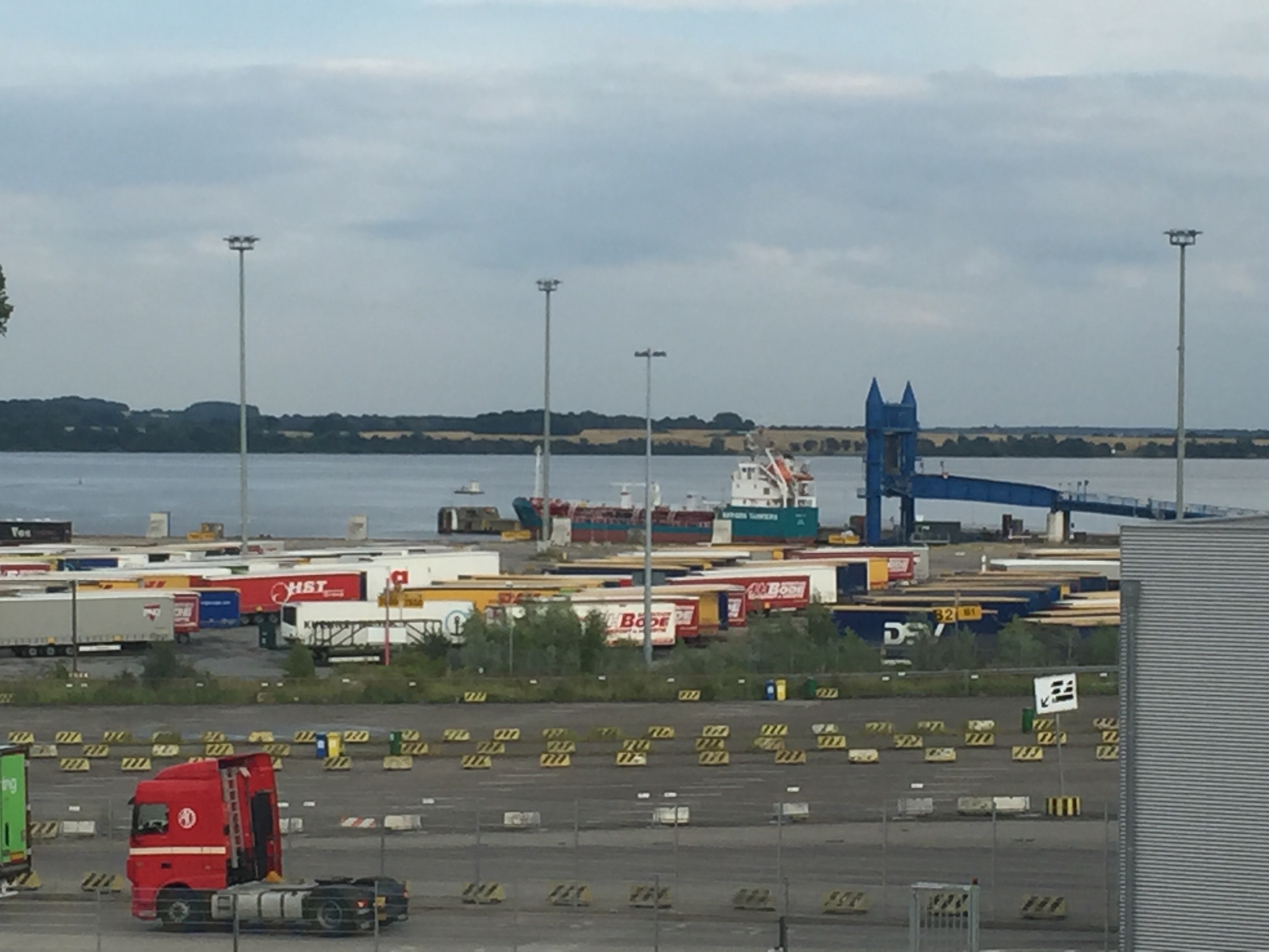 17:55 Förtöjda på SK7a och jag får skjuts av lotsen till inchrckningsterminalen. Bara vänta ett tag innan färjan kommer så jag kan checka in.