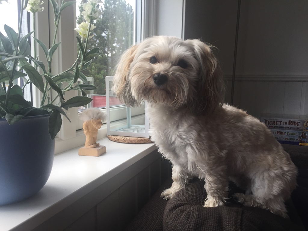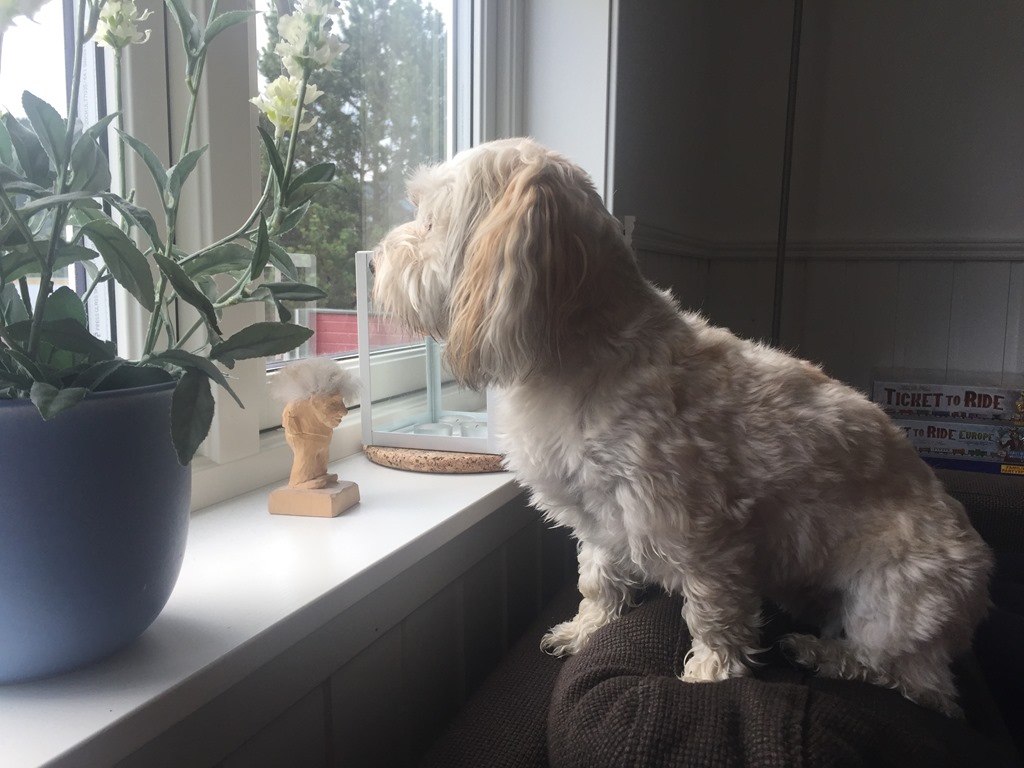 Vaknade till en mulen kall morgon så jag gick in till Karoline för att få lite kaffe. Chili satte sig för att spana ut på omgivningarna.