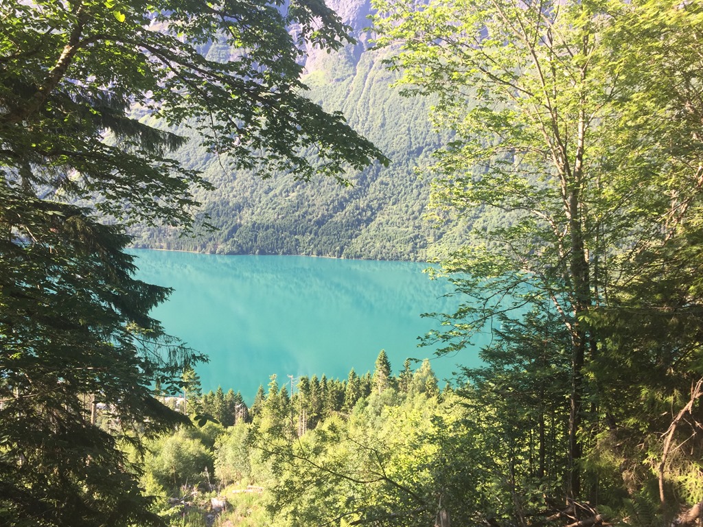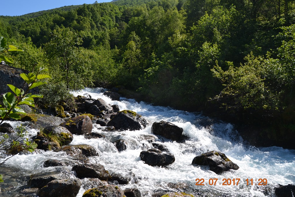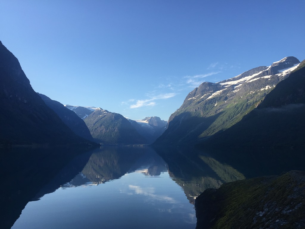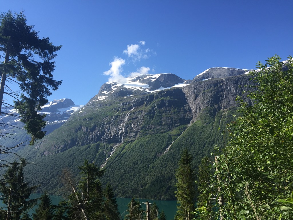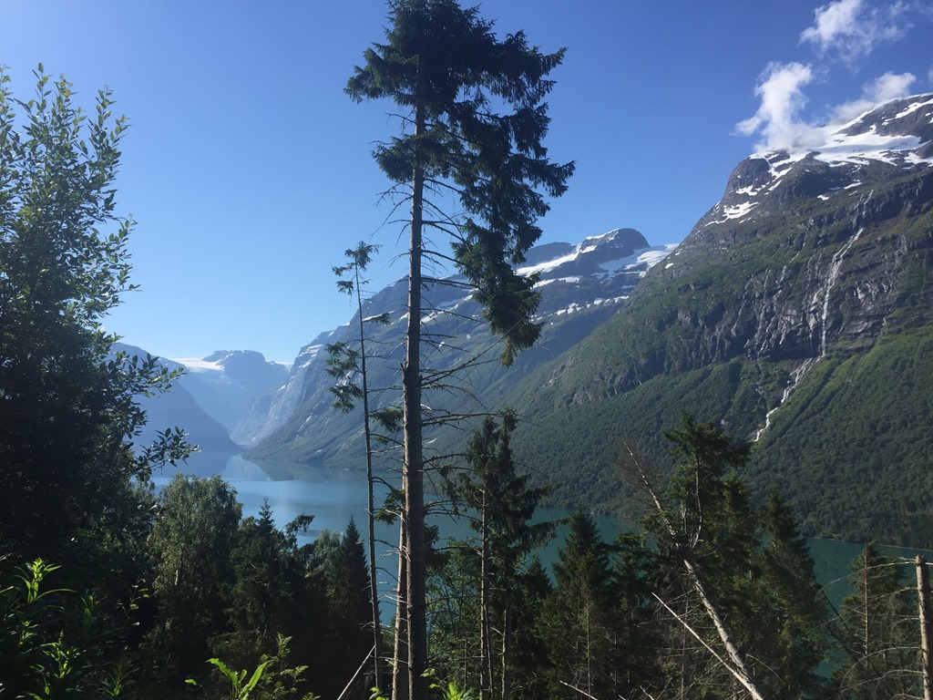 Tillbaka vid husbilen så gick jag för att slänga sopor och tömma latrinen. Fick dessutom ordnat så vi kunde få en sjöplats istället. När vi flyttat husbilen så slängde jag mig i sjön och badade men oj vad det var kallt. Kanske inte så konstigt när glaciären rinner ner i sjön.![]()