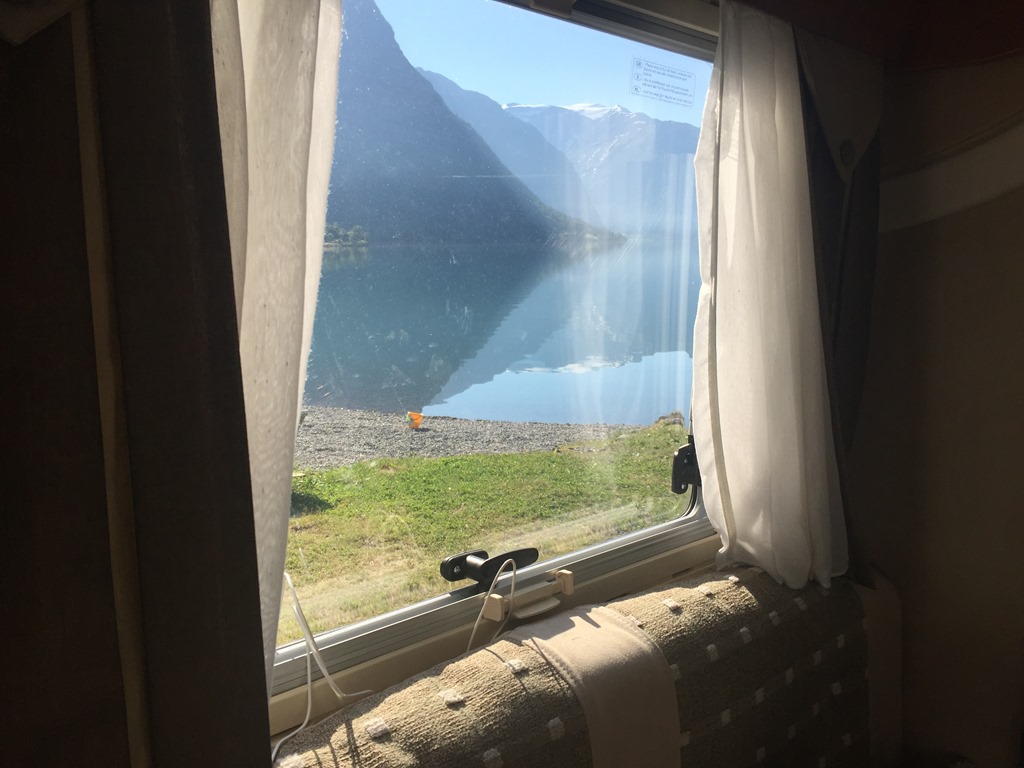 Vaknade inte innan 08:10 och gick då en runda med Chili innan jag började med frukost. Vi åt frukost och packade matsäck inför dagens äventyr. Ingen dålig vy från frukostbordet.![]()