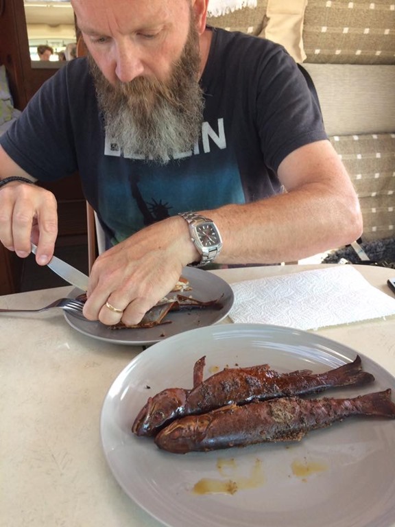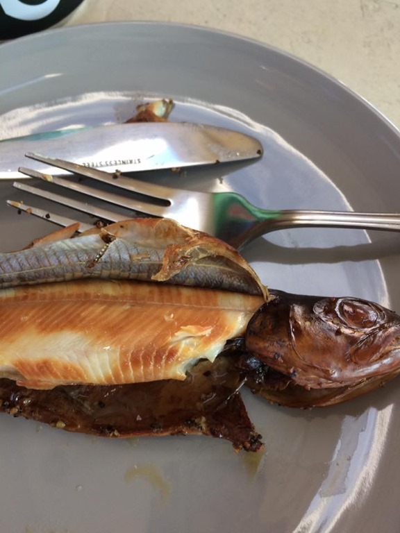 Sedan vidare 15 minuter till Bjölstad Camping. Var en lite fin camping där vi fick plats nere på piren. Så medans jag stekte hälleflundra och gjorde sallad så fiskade Britta upp 2 makrillar.IMG_5406[1]IMG_5407[1]IMG_5408[1]