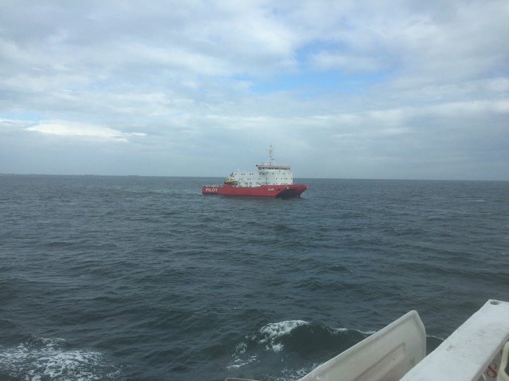 09:50 Elbe lotsen lämnar och vi fortsätter ut i Tyska bukten själva.