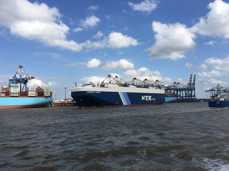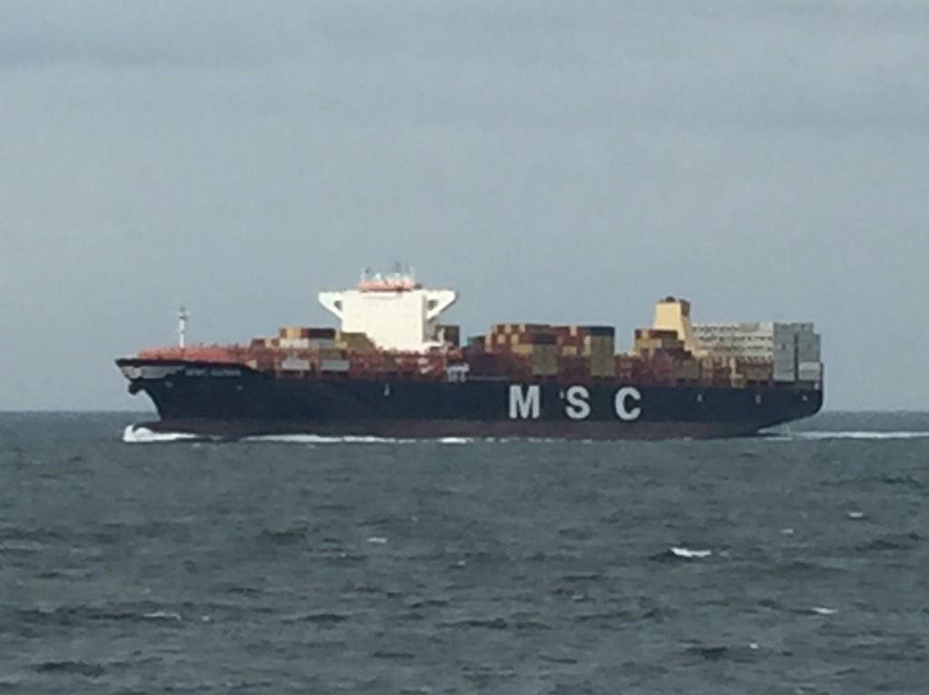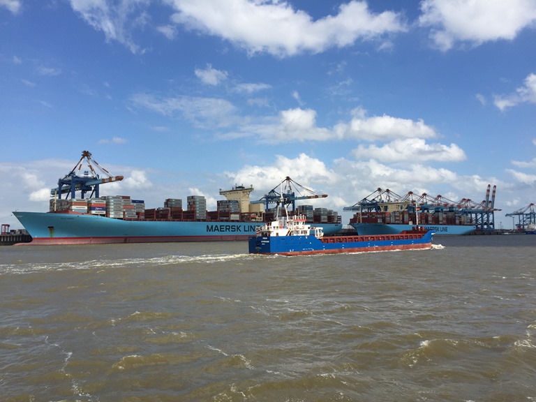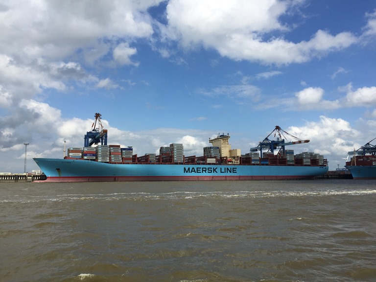 Vi fortsätter upp genom Weser och passerar Bremerhaven där det ligger en hel del stora båtar.