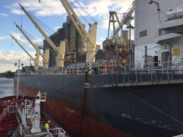 19:10 Förtöjda på utsidan KN Future efter att ha legat på utsidan 30 minuter och väntat på att någon skall ta trossarna. Sedan tar det ytterligare 1 timma innan slangen är kopplad, så nu går jag och lägger mig. Så får vi se när det blir klart.