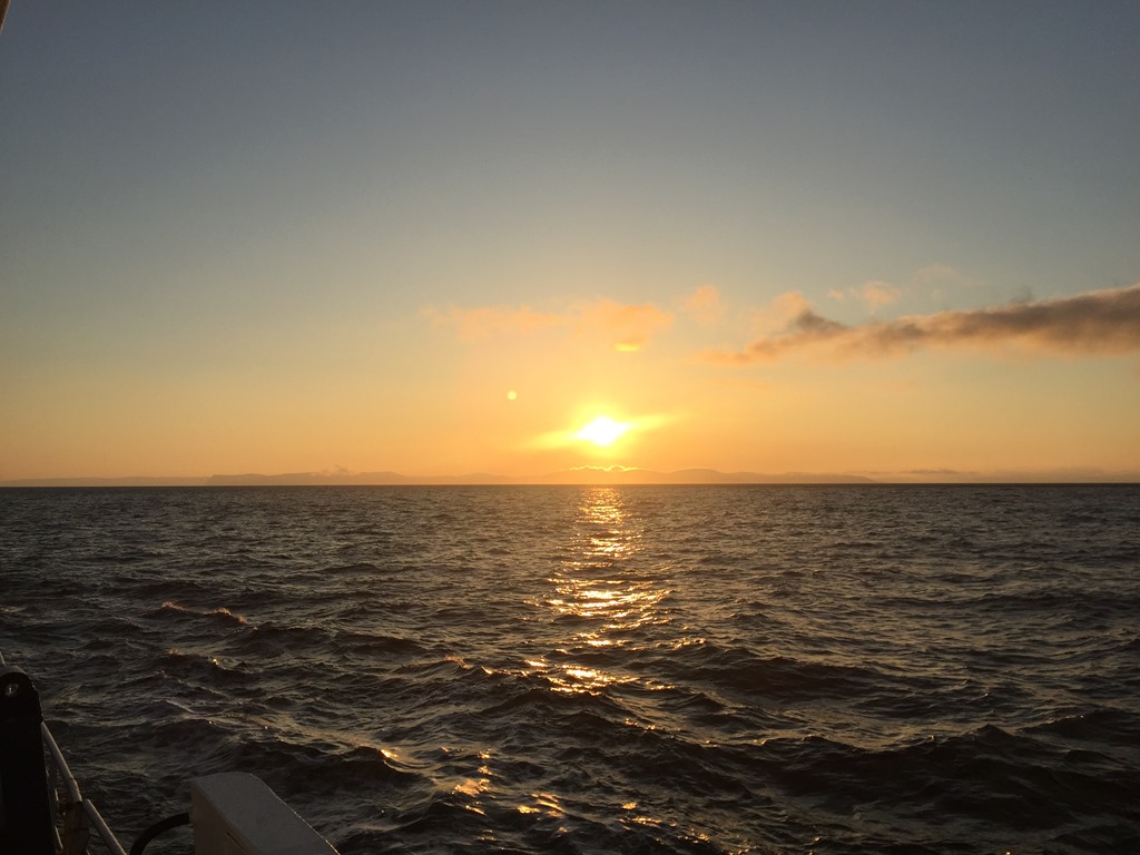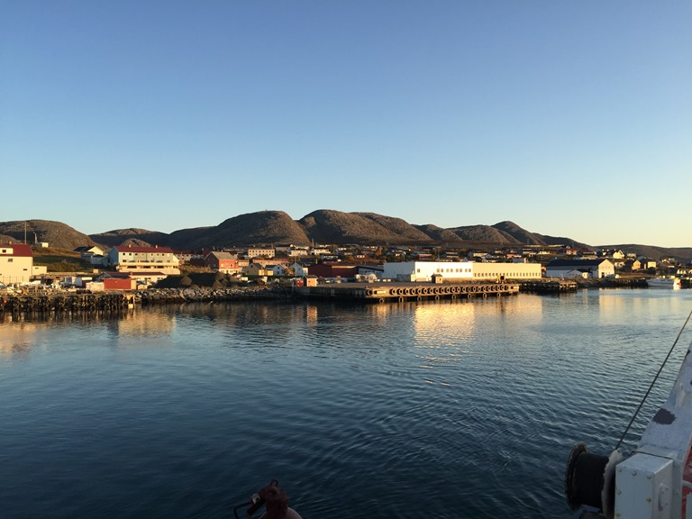 Går genom Mageröysundet och förbi Honningsvåg. Sedan ut mot Nordkinn i soluppgång med Nordkapp bakom oss.![]()