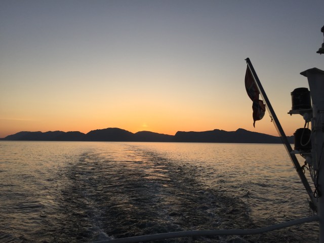14:00 Kommer på vakt vid Sildmylingen och nu lyser solen och vi fortsätter mot Hammerfest.