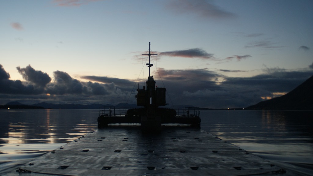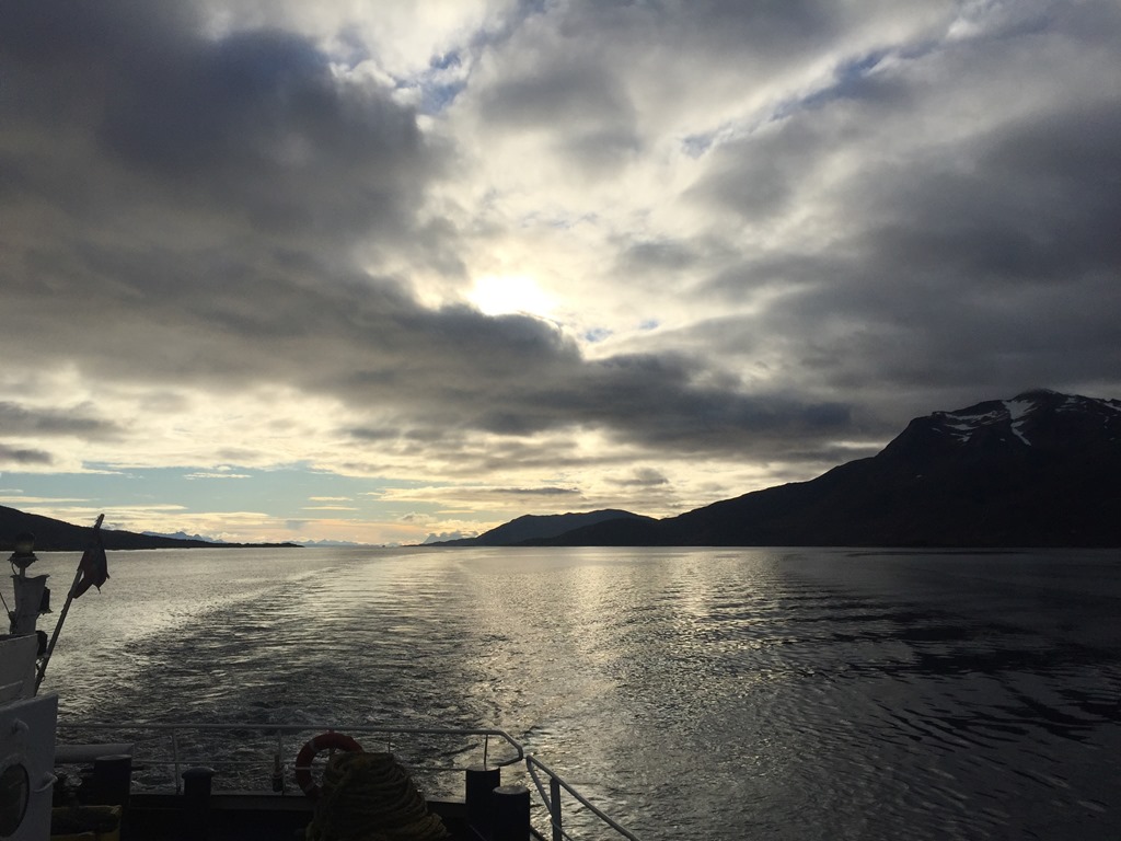 02:00 Kommer på vakt i Tjeldsundet. Vi går med reducerad fart för att vi ändå inte får lasta innan 7.