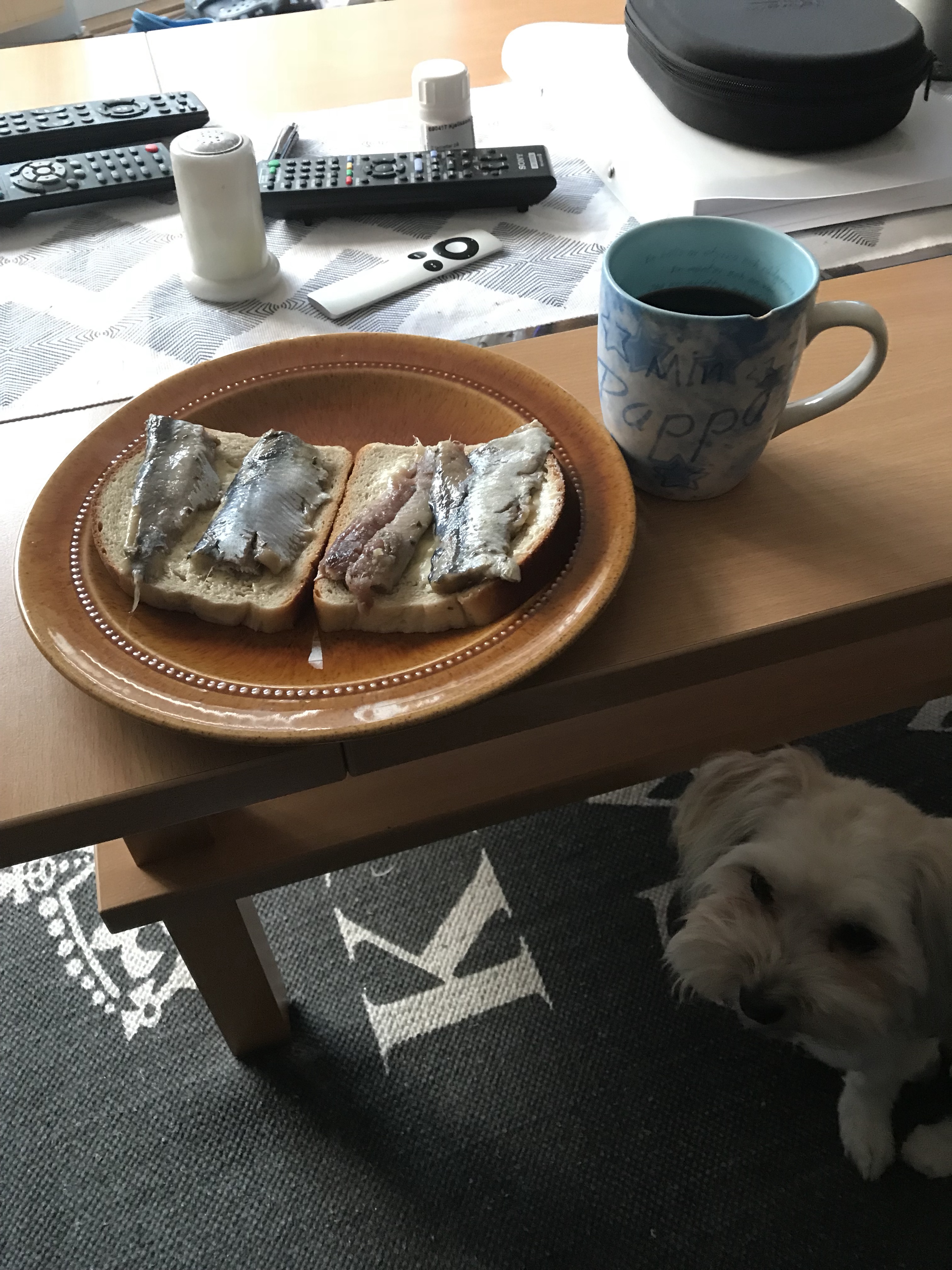 Till lunch så gjorde jag pannkakor till Elin och Oscar medan jag åt stekt färsk sill.
