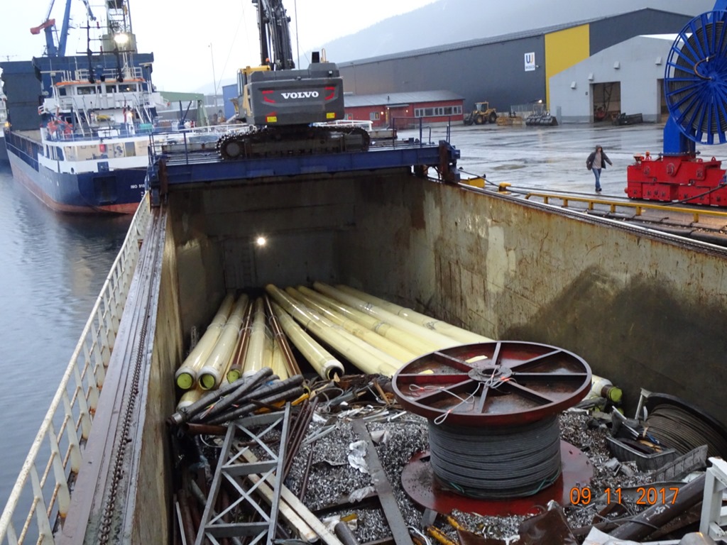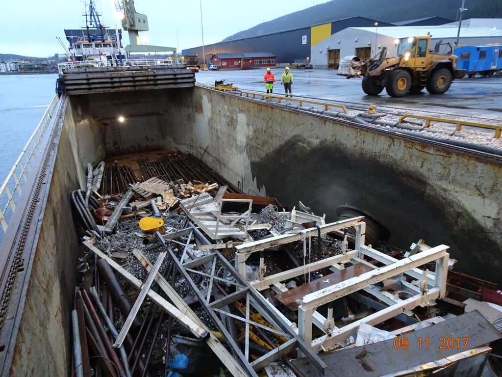 08:15 Förtöjda i Mo i Rana för att börja lasta lite mer skrapjärn. Vi har ju fått ombord 370 ton i Hammerfest. Vi skall lasta 24 meters 17 tums järnrör.