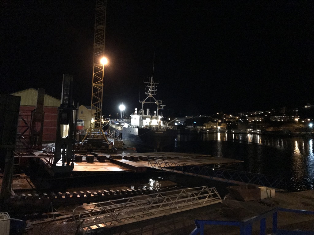 08:00 Vi sätter igång att måla i lastrummet och varvet börjar skära ut hål i tanktoppen för fästet av det flyttbara skottet. Lite senare så kommer Brannservice och skall kontrollera alla våra brandsläckare och rökdykarflaskor. Asbjörn får at han om elektrikern som skall laga vår autopilot.