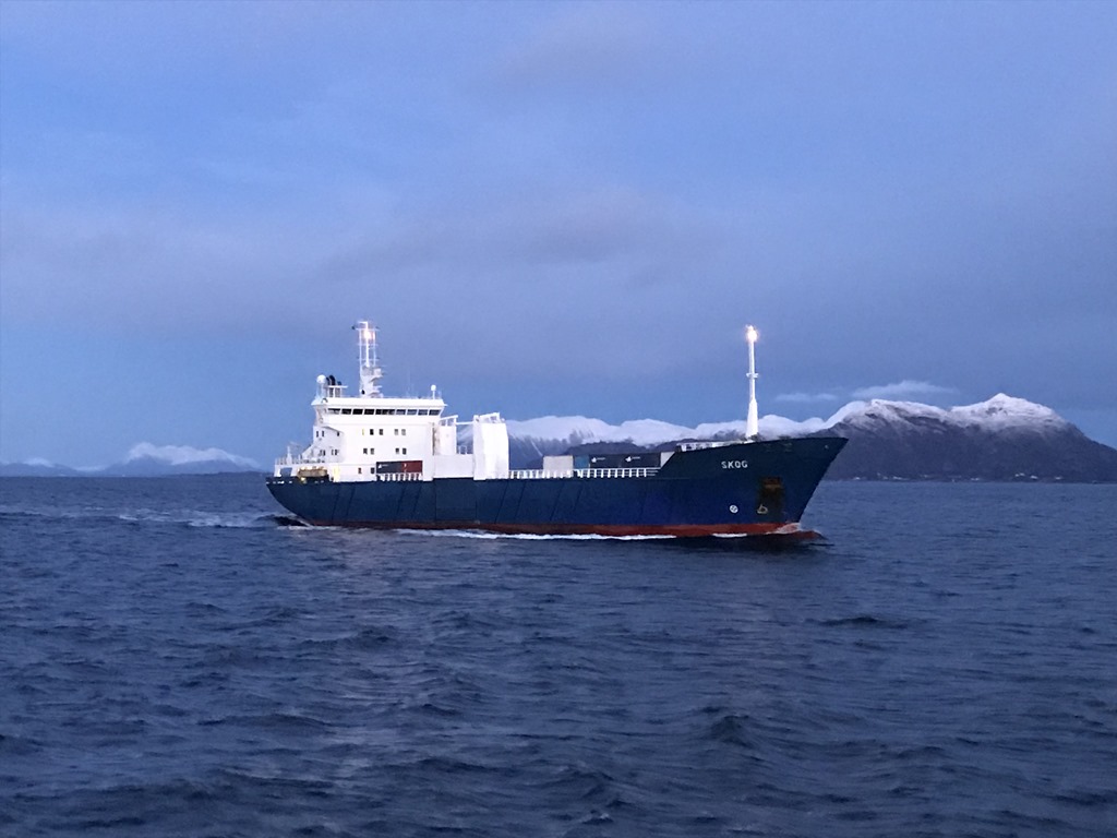 Sedan kommer styckegodsbåten Skog och kör förbi.