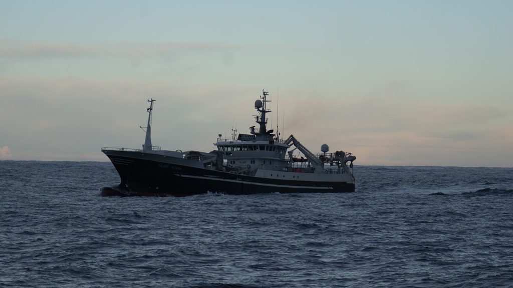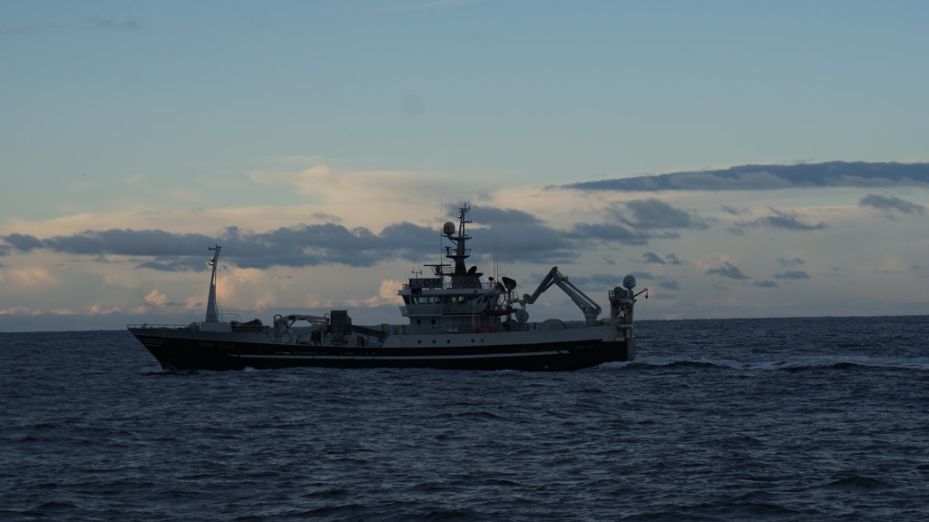 14:00 Kommer på vakt när vi har passerat Kolbeinsflua och är på väg ner genom Saltsteinsleia. Blir först omkörda av fiskebåten Talbor.