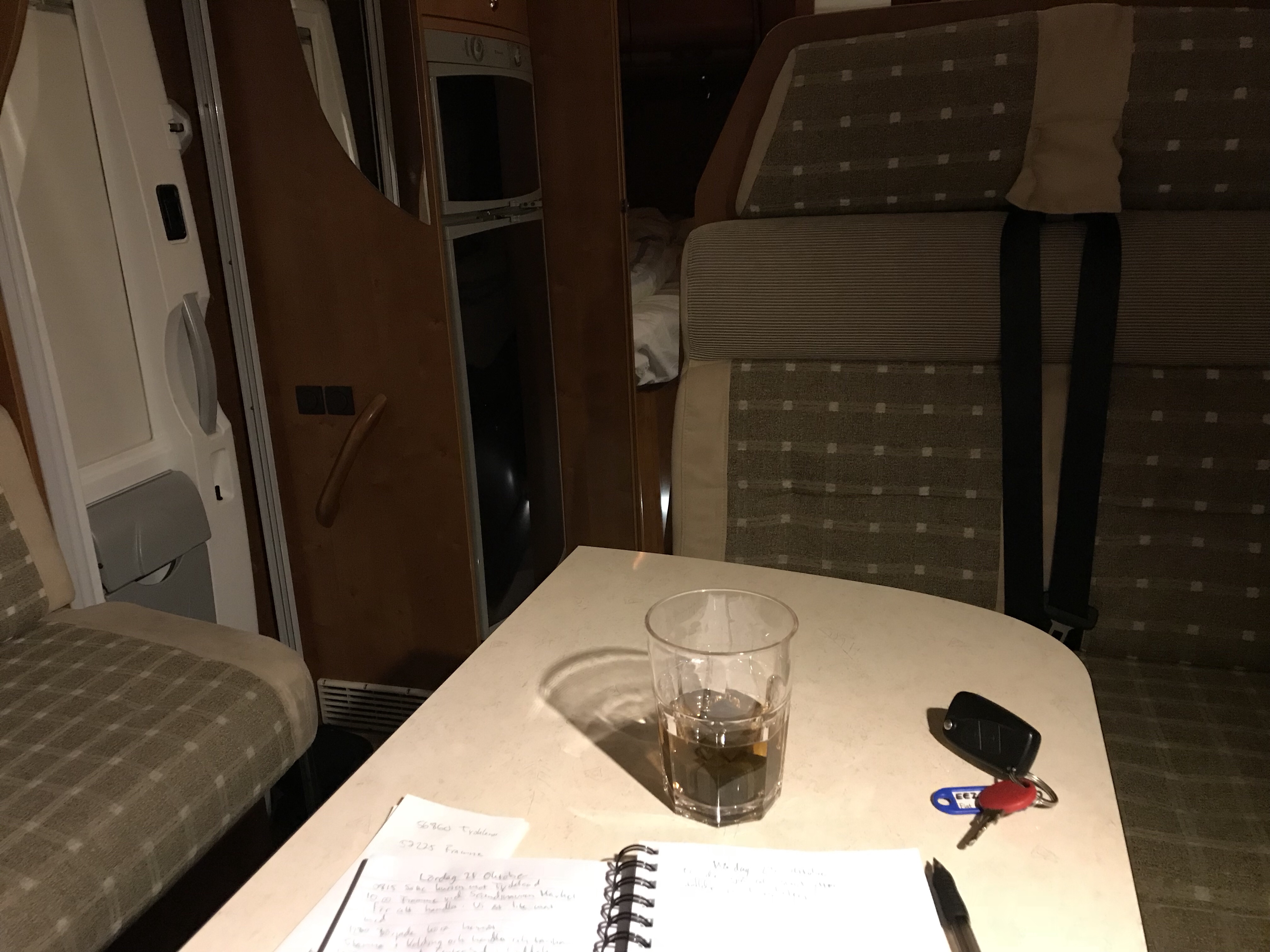 22:45 Framme i Skagen och parkerade vid skolan. Tar mig en liten sängfösare för att lugna nerverna inför morgondagen.