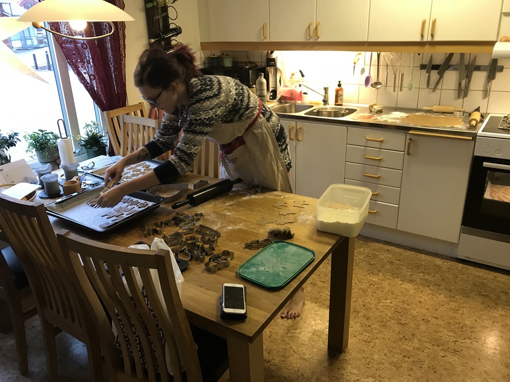 Jag och Linnea bakar pepparkakor och sedan gör hon lite kolor.