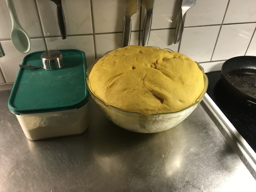 Efter maten så sätter Linnea igång och gör lussekatter. Är en rejäl sats hon har gjort. ![]()