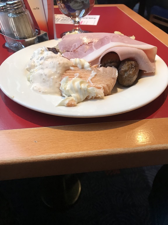 Ombord på färjan så blir det lite julbord. Inte mycket att hitta på under resan över så jag äter och tar sedan lite kaffe.
