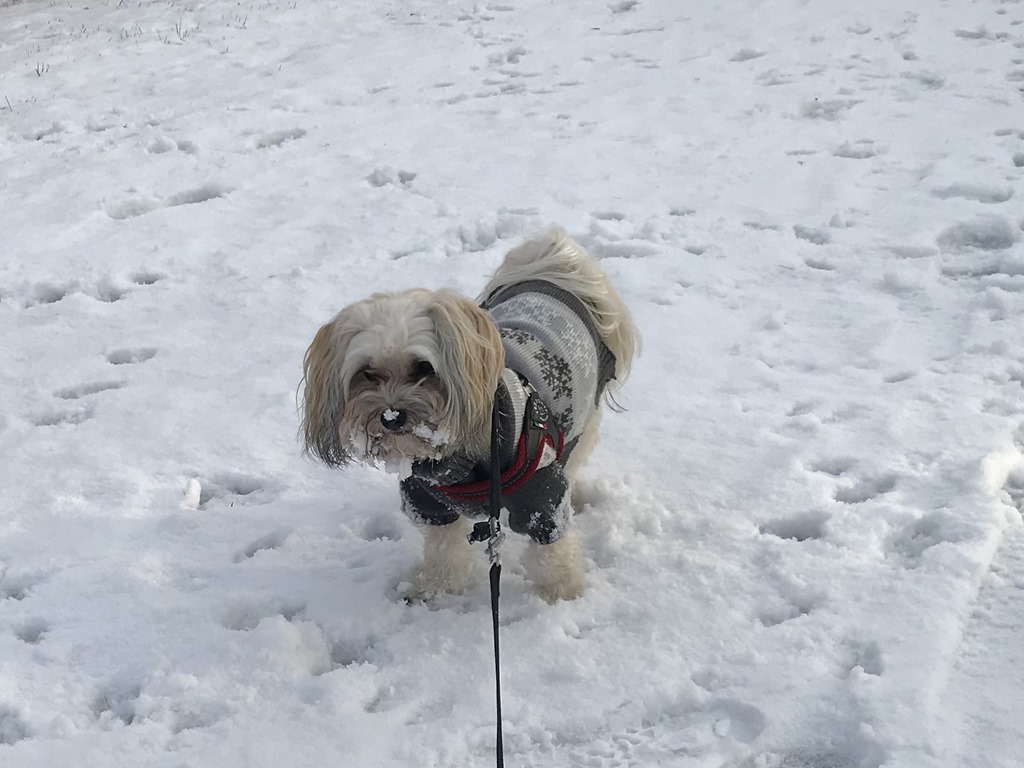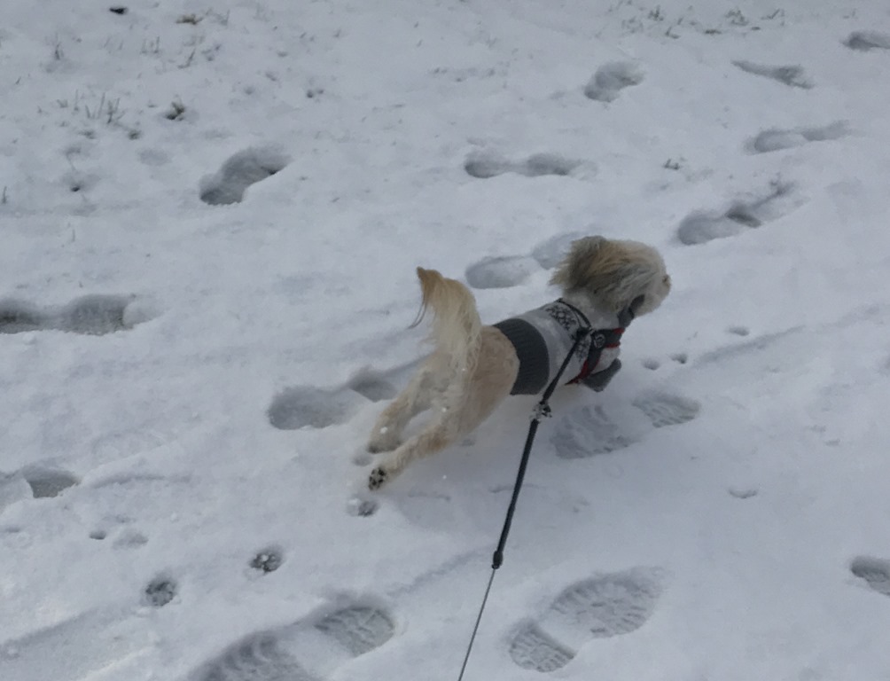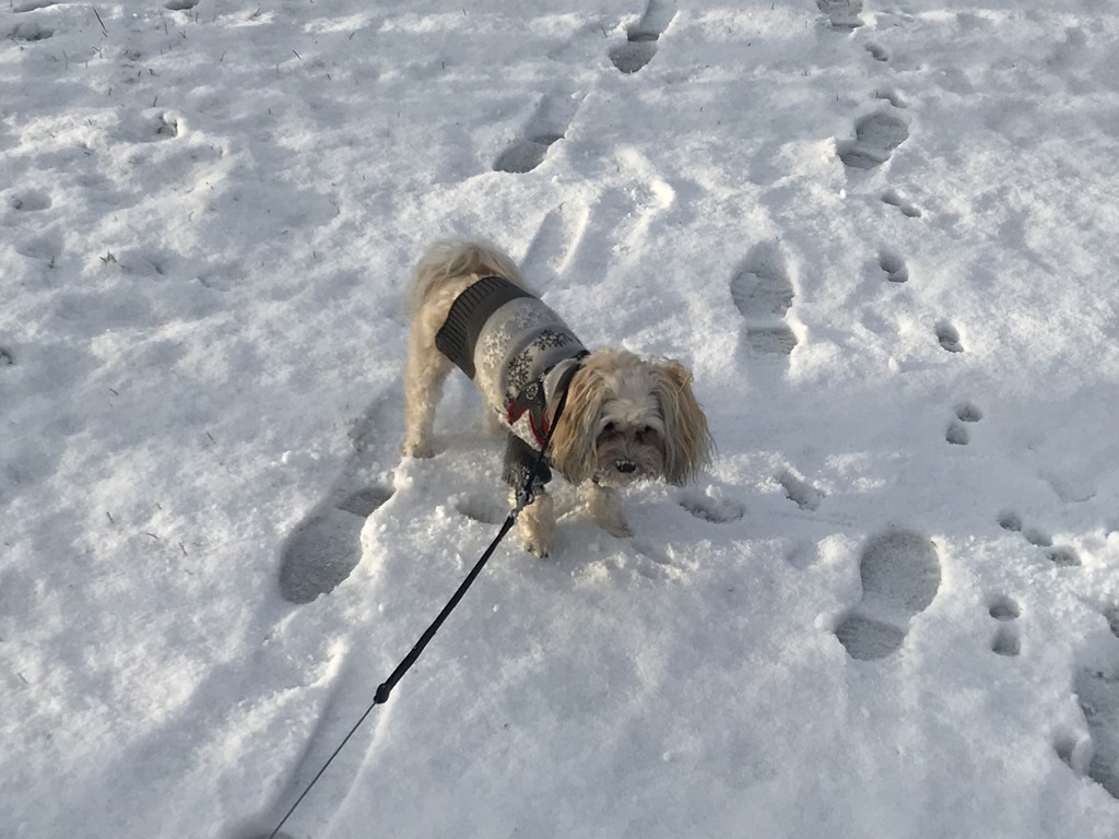 Snöat hela natten till och från så det var ganska vitt ute när jag vaknade. Gick flera promenader med Chili som älskade att leka i snön.