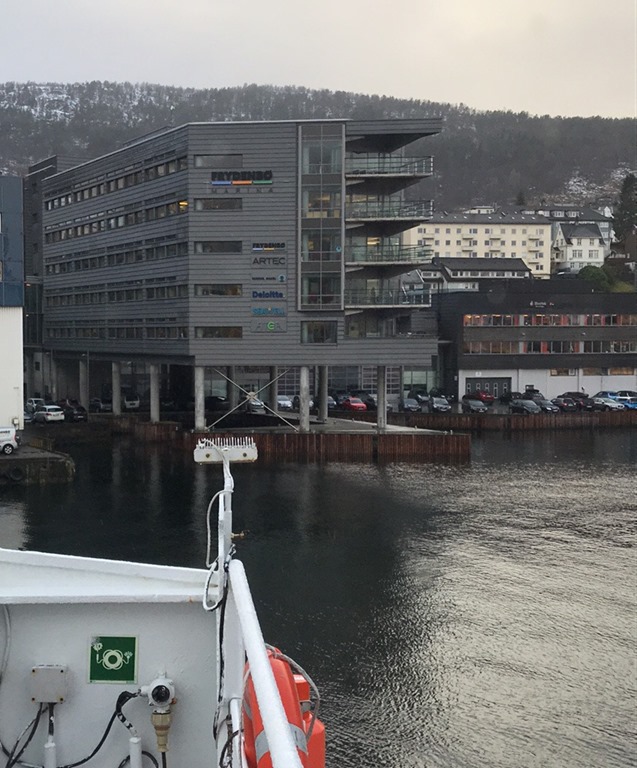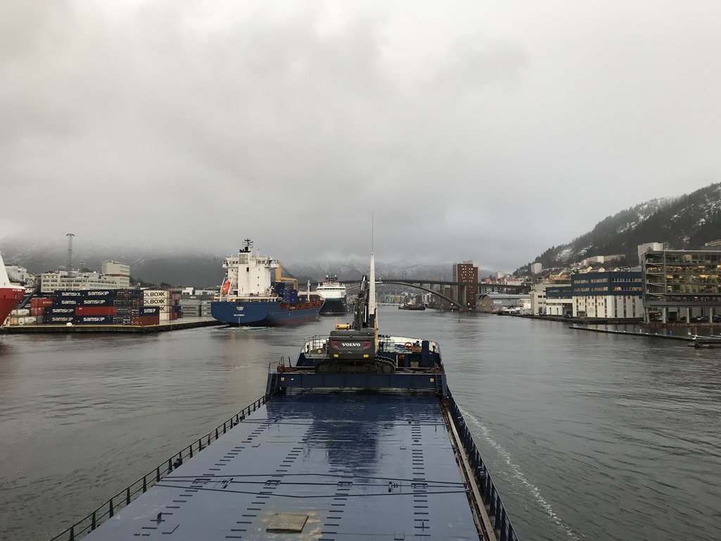 10:20 Färdig lastade och avgår mot Bergen i sedvanligt regnväder.